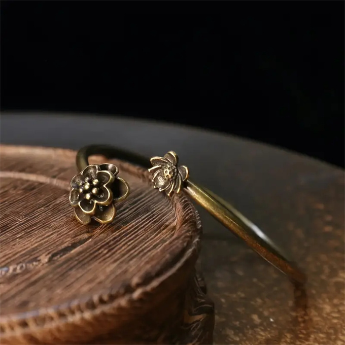 純銅 ブレスレット 健康エネルギー 調節可能 アクセサリー 効果 バングル ヴィンテージスイ花のブレスレットアクセサリー