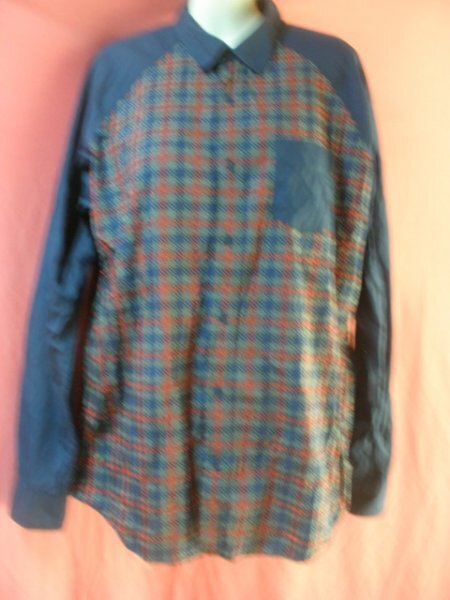 ・USED 千鳥柄 シャツ サイズXL 紺系です。