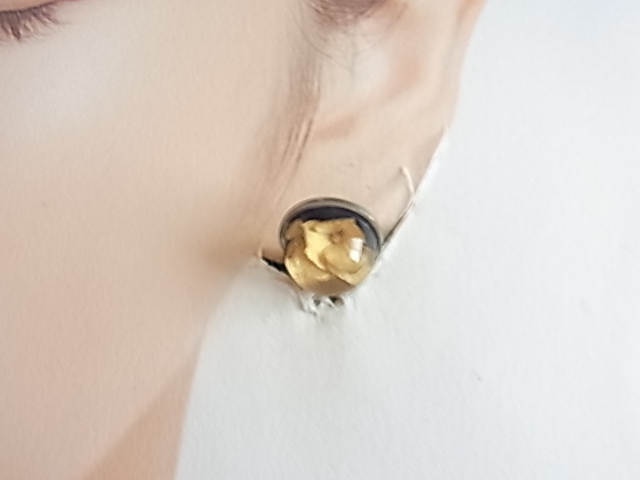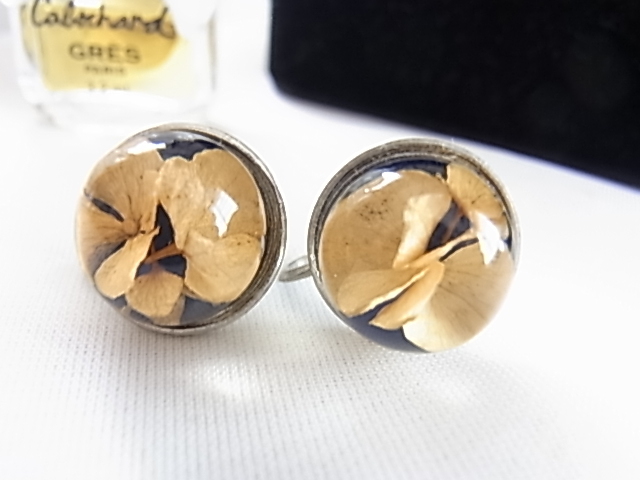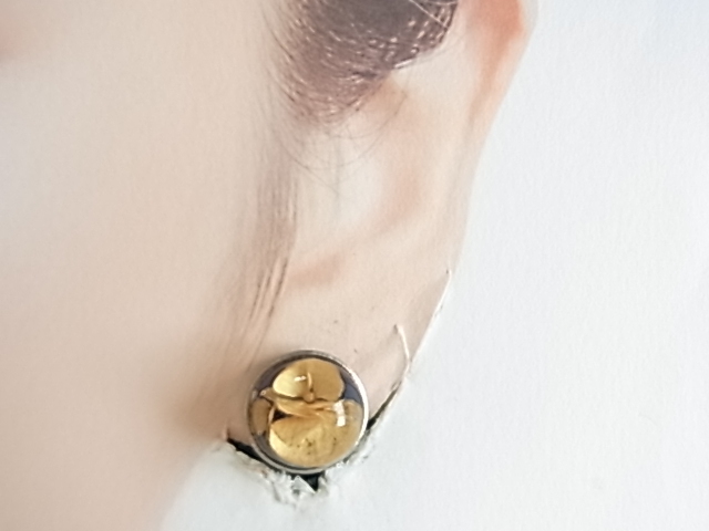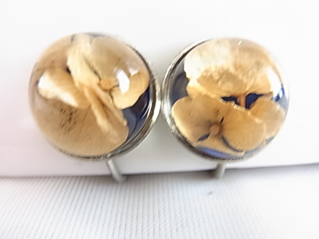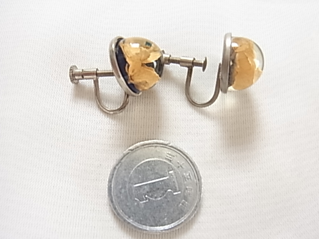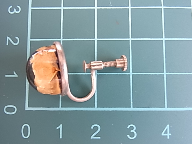 ビンテージ/ヴィンテージ 美しい和モダン 水中花 鼈甲調の色味 素材不明 ドーム型のデザインが可愛い印象 昭和レトロイヤリング☆
