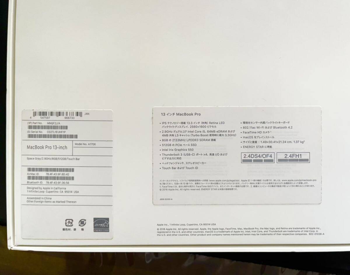元箱 Apple MacBook Pro 13 inch 2017 A1706