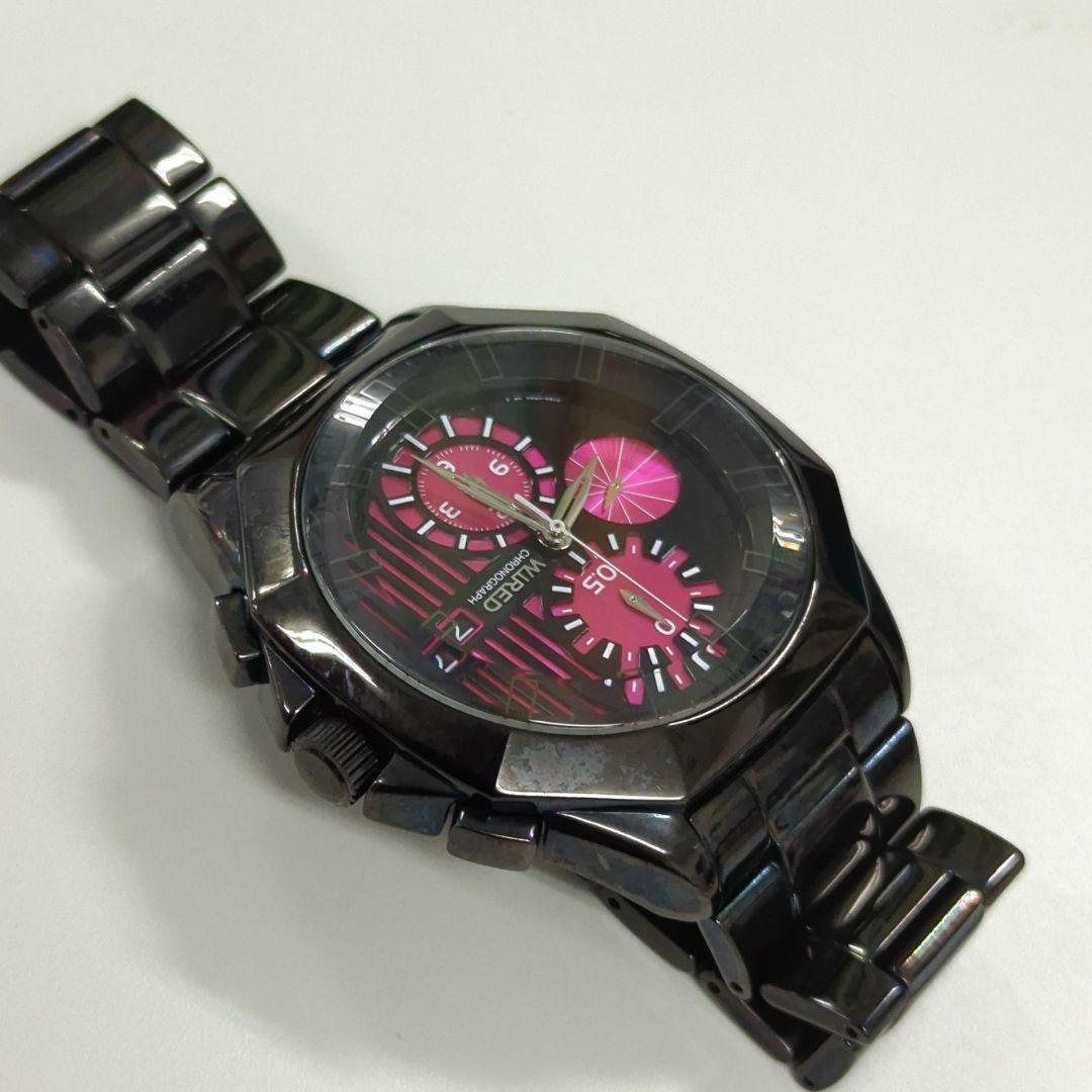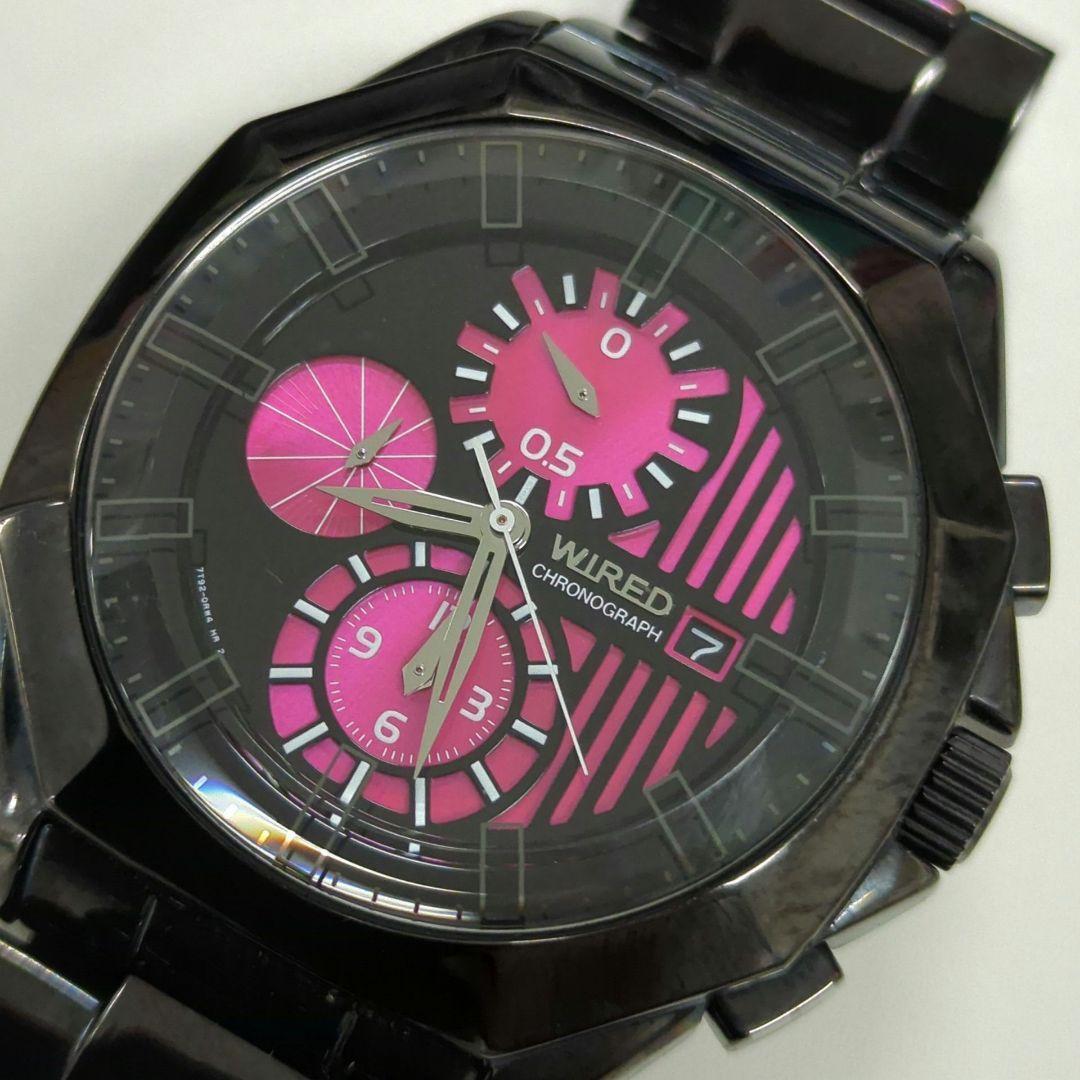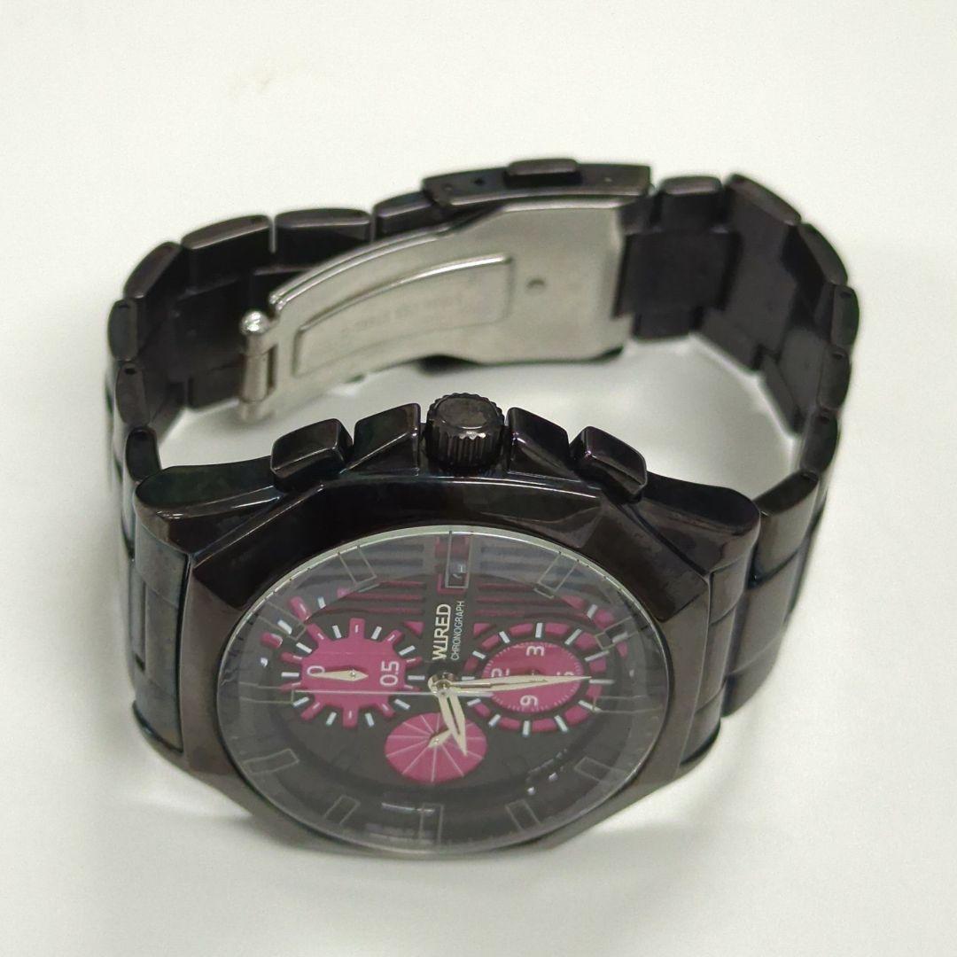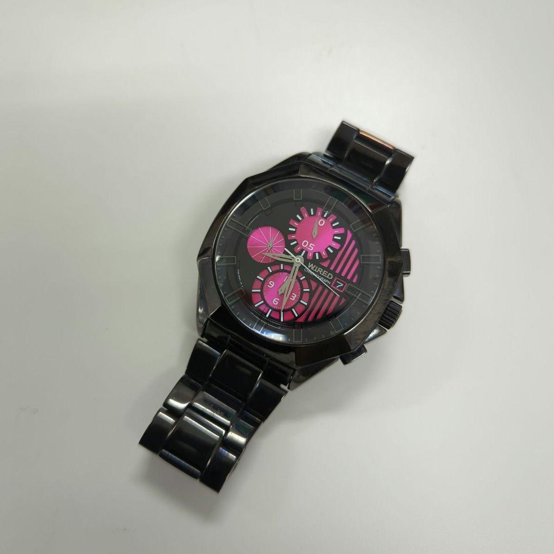 【正規稼働良品】 ワイアード 7192-0LW0 QZ 黒/ピンク文字盤 クロノグラフ デイト ラウンド メンズ 腕時計