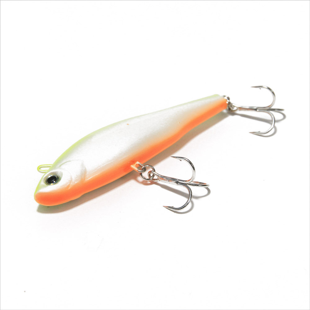 ルアースイム 固定重心なので、着水後ローリングしながらのカウントダウン、デッドスローではローリング、リトリーブ速度を上げるとウォブリングし、更にリトリーブ速度を上げると不規則なダートにオートマチックに泳ぎが変わります。(ロッドアクションを使わなくてもこの泳ぎが可能なルアーです)