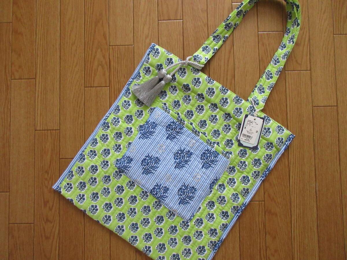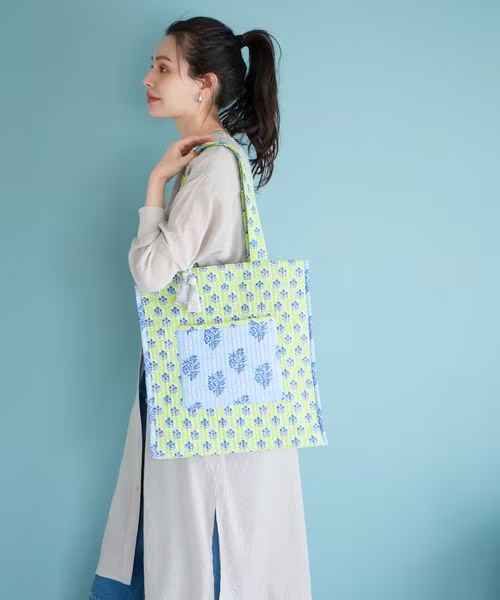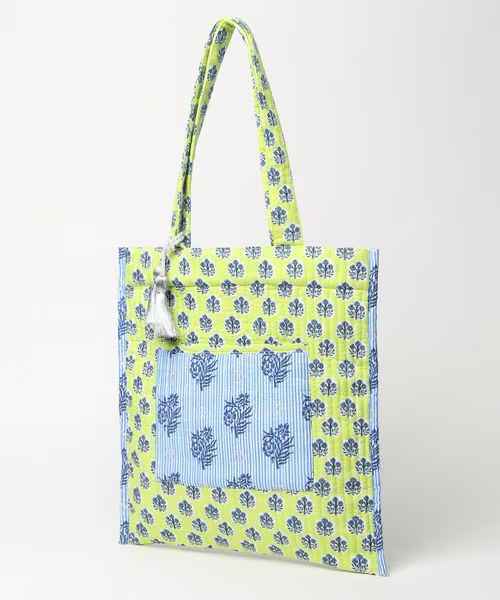 BAYFLOW ベイフロー ブロックプリント トートバッグ (ライトグリーン) 花 フラワー キルティング バッグ