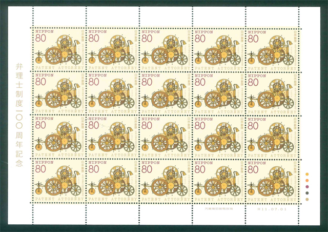 弁理士制度100周年記念 記念切手 80円切手×20枚