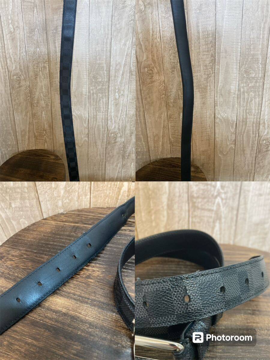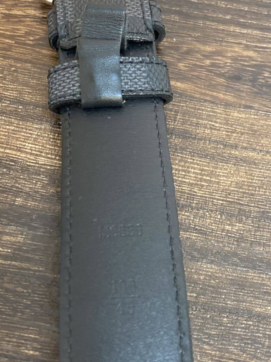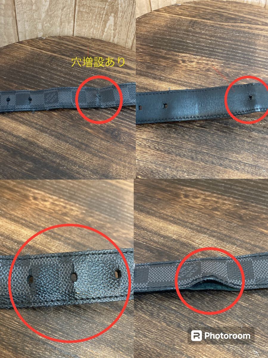 LOUIS VUITTON ベルト サンチュール フォース ベルト 100/40ダミエ・グラフィット×ブラック/グレー M9636 ほつれ、ダメージあり 穴増設