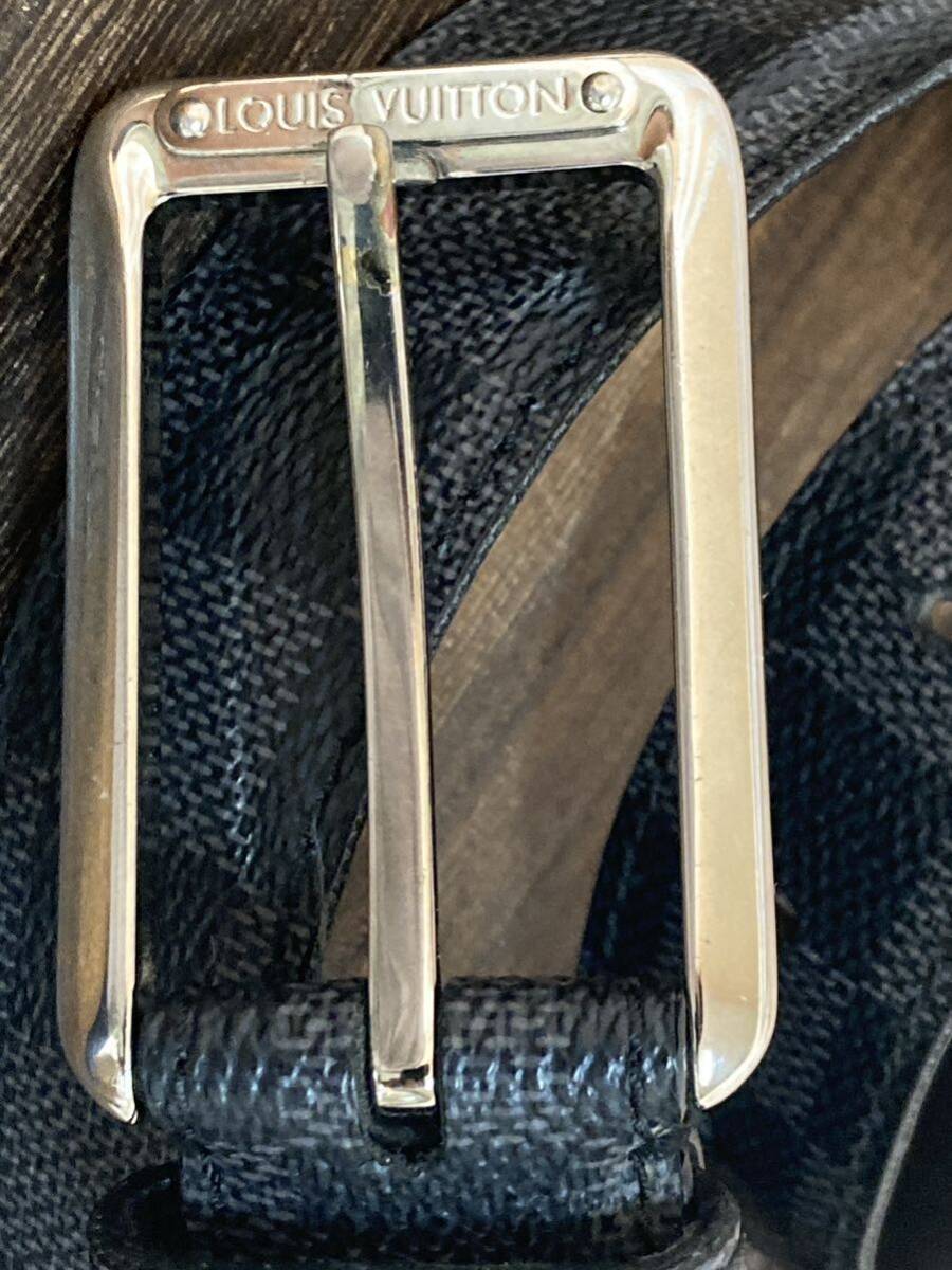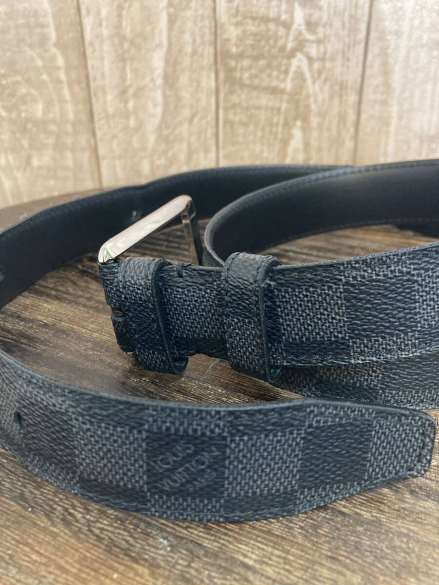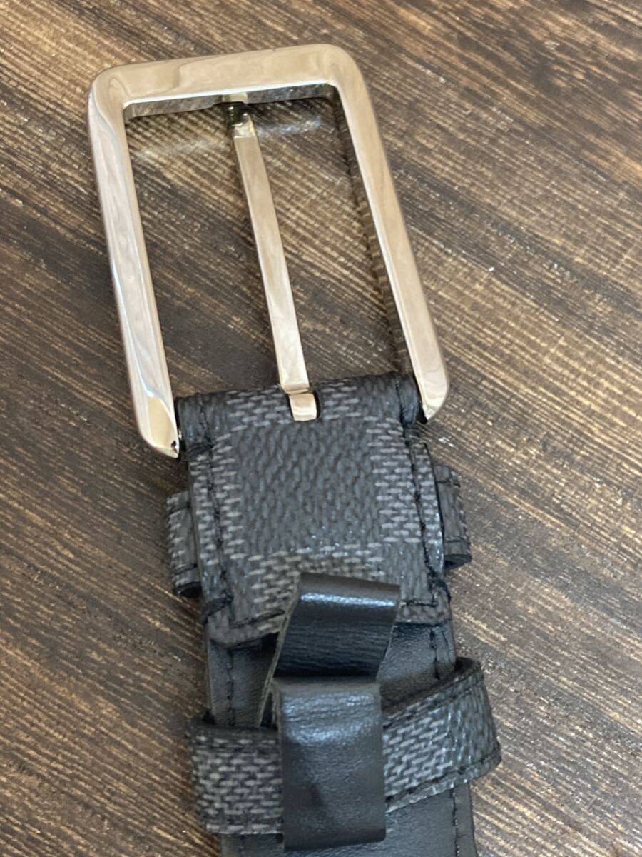 LOUIS VUITTON ベルト サンチュール フォース ベルト 100/40ダミエ・グラフィット×ブラック/グレー M9636 ほつれ、ダメージあり 穴増設