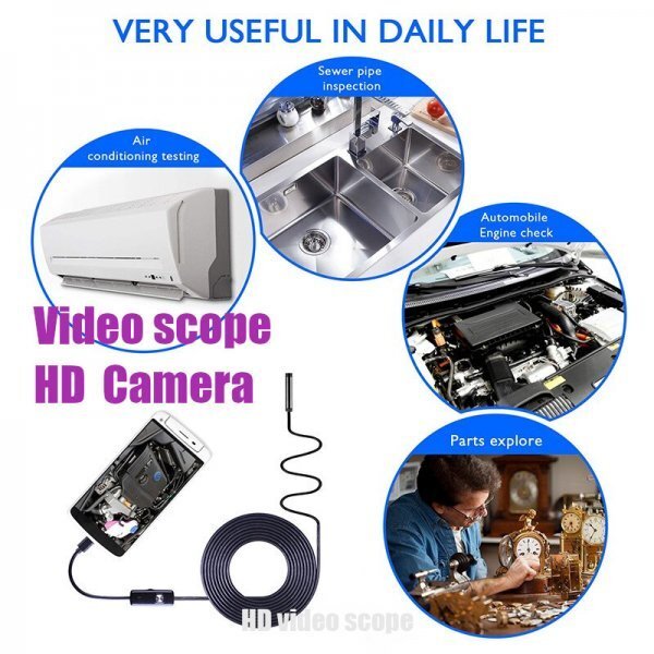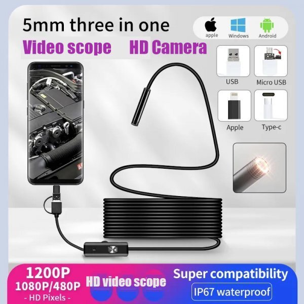 「送料無料」スマホ接続,ファイバースコープ,内視鏡カメラ,ビデオスコープ,フレキシブル,IP67防水,ミニ産業用,LEDライト