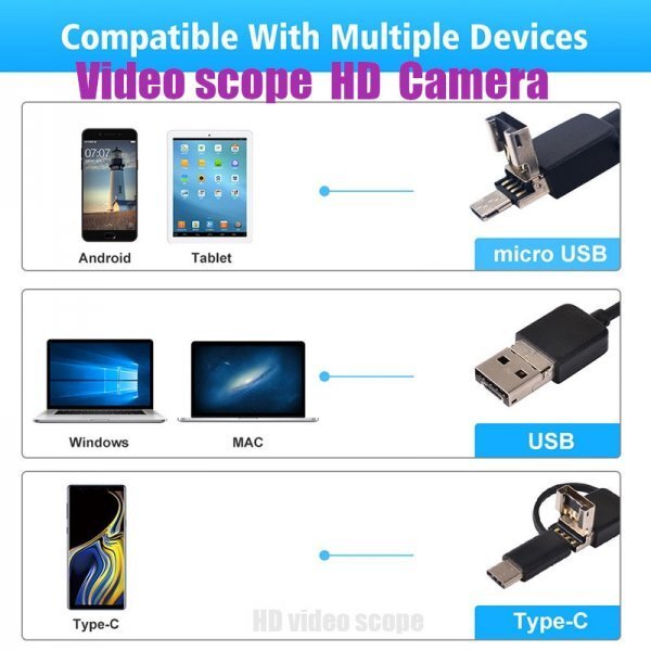 内視鏡カメラ,フレキシブル,防水,ミニ産業用,スマホ用、LED角度調整可能, Windows、Mac PC Android 対応