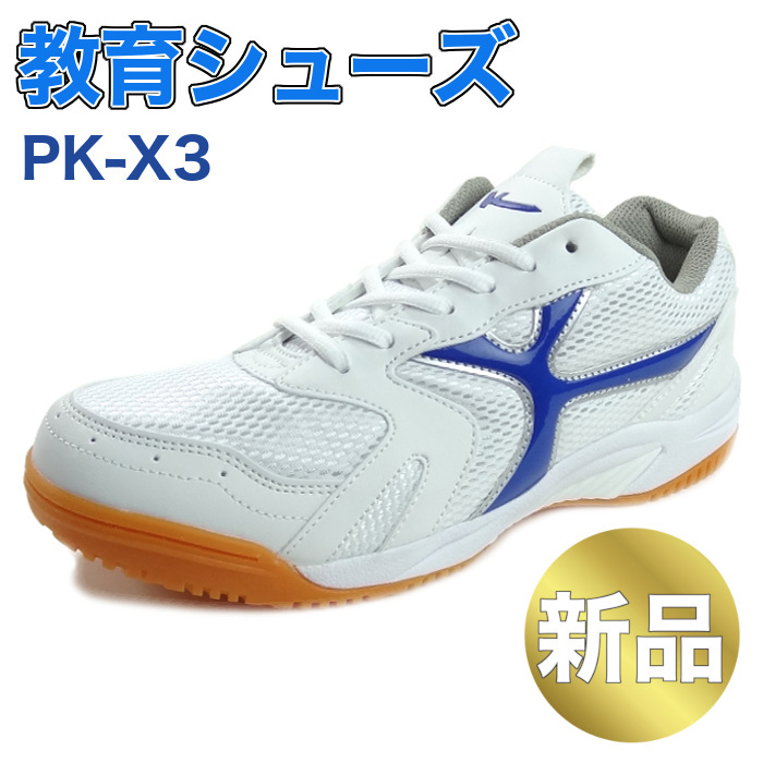 ブランド名:教育シューズ 品番:PK-X3 色:ブルー 青 サイズ:23.0cm 靴の幅:表記はありませんが広めの3E相当です。 素材: アッパー(甲)ポリエステル/人工合皮 ソール(底)合成ゴム/合成樹脂 生産国:中国 メーカー:日進ゴム株式会社 軽量で耐久性、グリップ性に優れたスニーカーです。中学校、高校で上履きや体育館履き、スクールシューズとして多くの中学生、高校生に使用されている男女兼用のシューズです。サイズ展開が幅広く、一般の方のスポーツシューズ、体育館シューズ、室内シューズにもおすすめです。 軽量で屈曲性に優れたスニーカーなので、インドア、バレーボール、スカッシュ、スタジオやジムでのトレーニングやエクササイズなどフィットネスシューズとしても最適です。 | ||