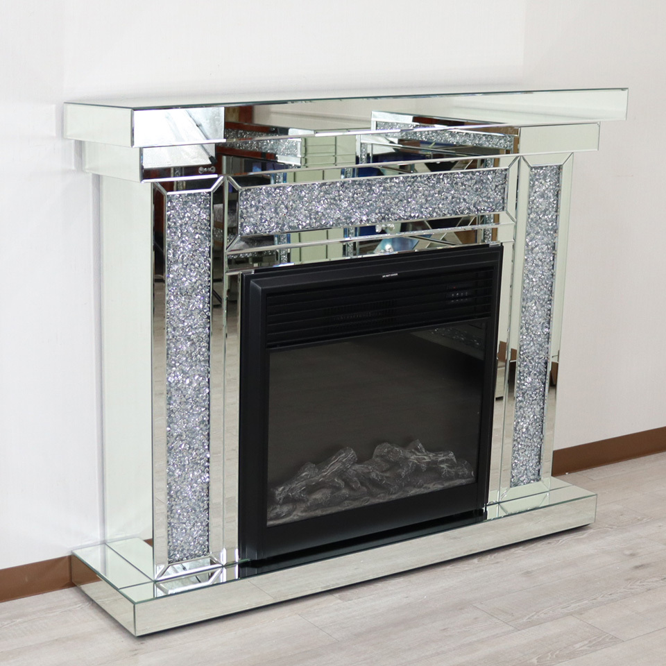 ミラー家具 マントルピース 暖炉 ディスプレイスタンド 120cm シルバーラインストーン ミラー 韓国インテリア グラムスタイル