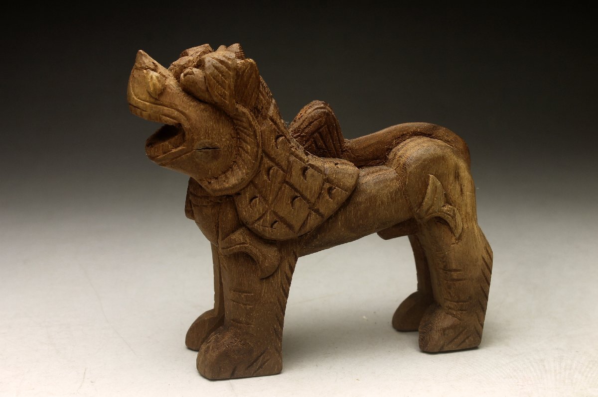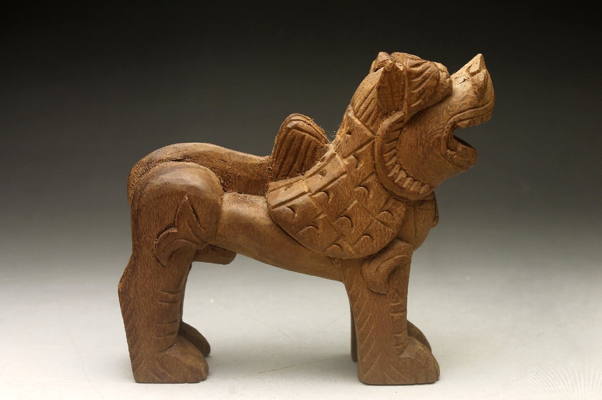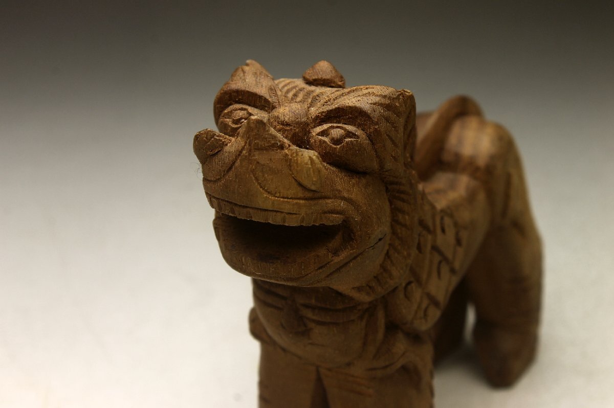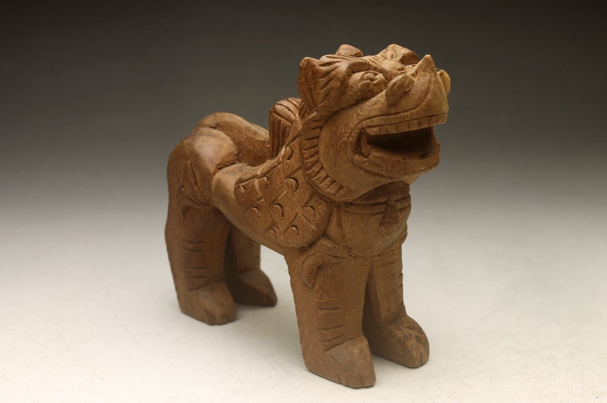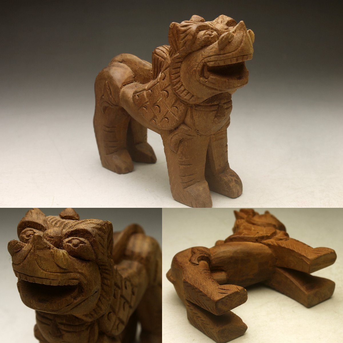 【余韻】 天然木製 木彫 狛犬★無傷美品<同梱可>