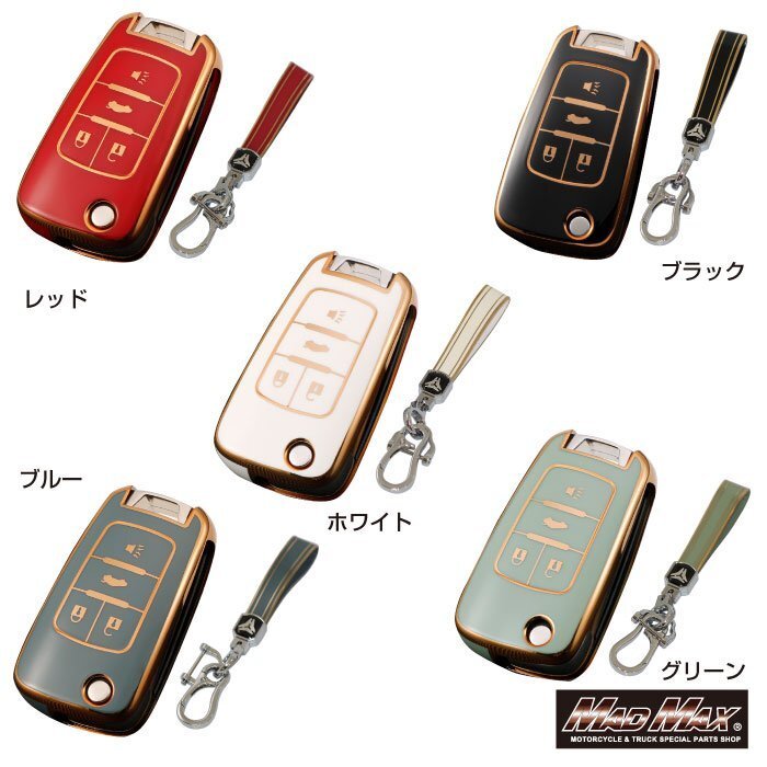 シボレー専用 ゴールドライン TYPE A 4ボタン式 TPUソフト スマートキーケース グリーン