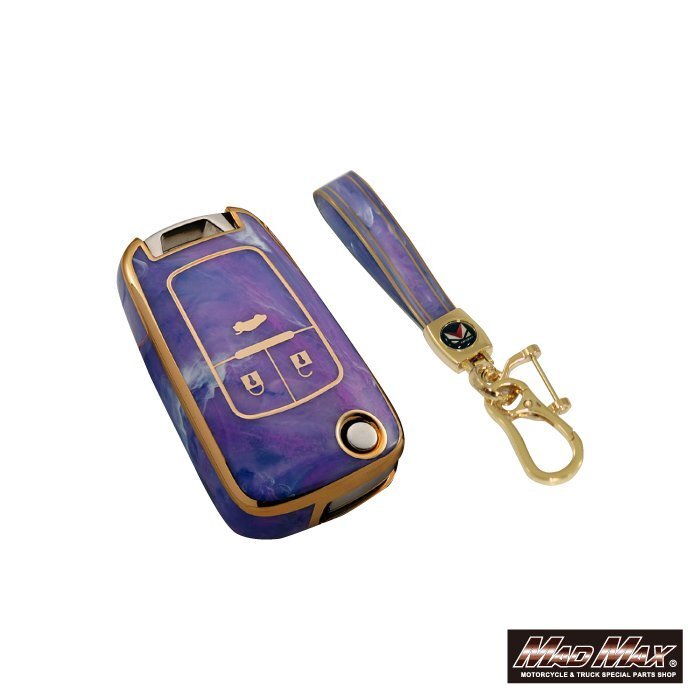 シボレー専用 大理石調 TYPE A 3ボタン式 TPUスマートキーケース パープル