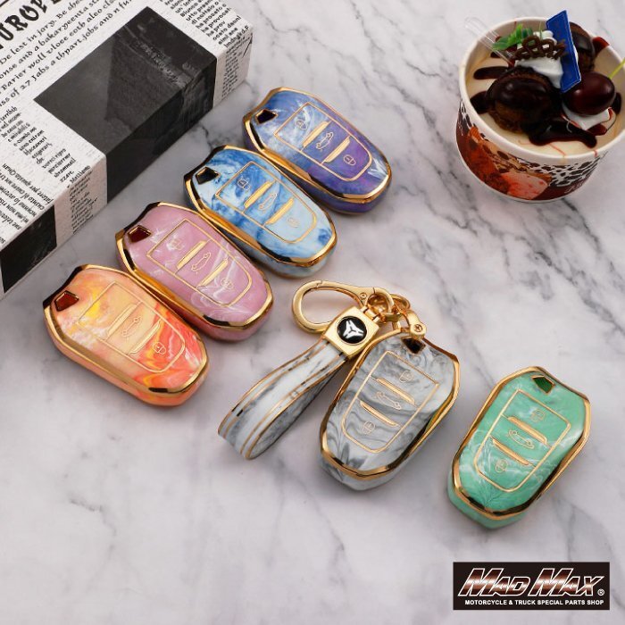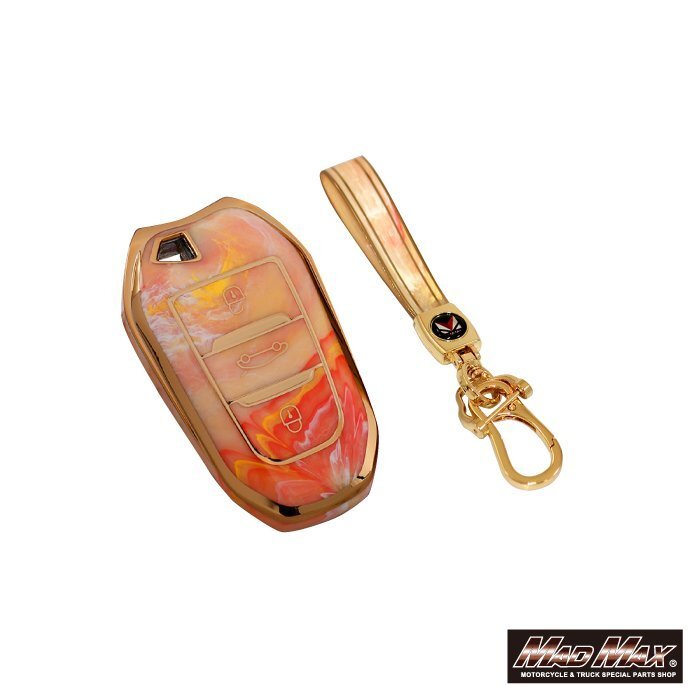 プジョー専用 大理石調 TYPE A TPUスマートキーケース オレンジ。