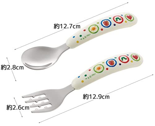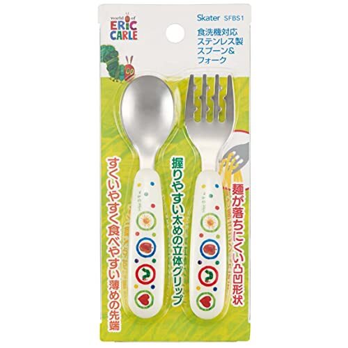 「スケーター (skater) 子供用 スプーン フォーク セット はらぺこあおむし SFBS1-A」▼4973307587320▼(商品説明)・はらぺこあおむし SFBS1-A・素材・材質:柄=ABS樹脂 金具=ステンレス鋼・耐熱温度:100度・セット内容:スプーン+フォーク説明 お子様の小さな手でもしっかり握れる太めのグリップ スプーン子供用 フォーク子供用 2種類のセット やわらかくて滑りにくい素材を使用 お子様が食べ物を口に運びやすい先端斜め形状 小さな手でも取りやすいカーブ形状 先端は丸い安全形状、お口に合う形なので食べやすい スプーン フォーク セット 電子レンジ使用不可