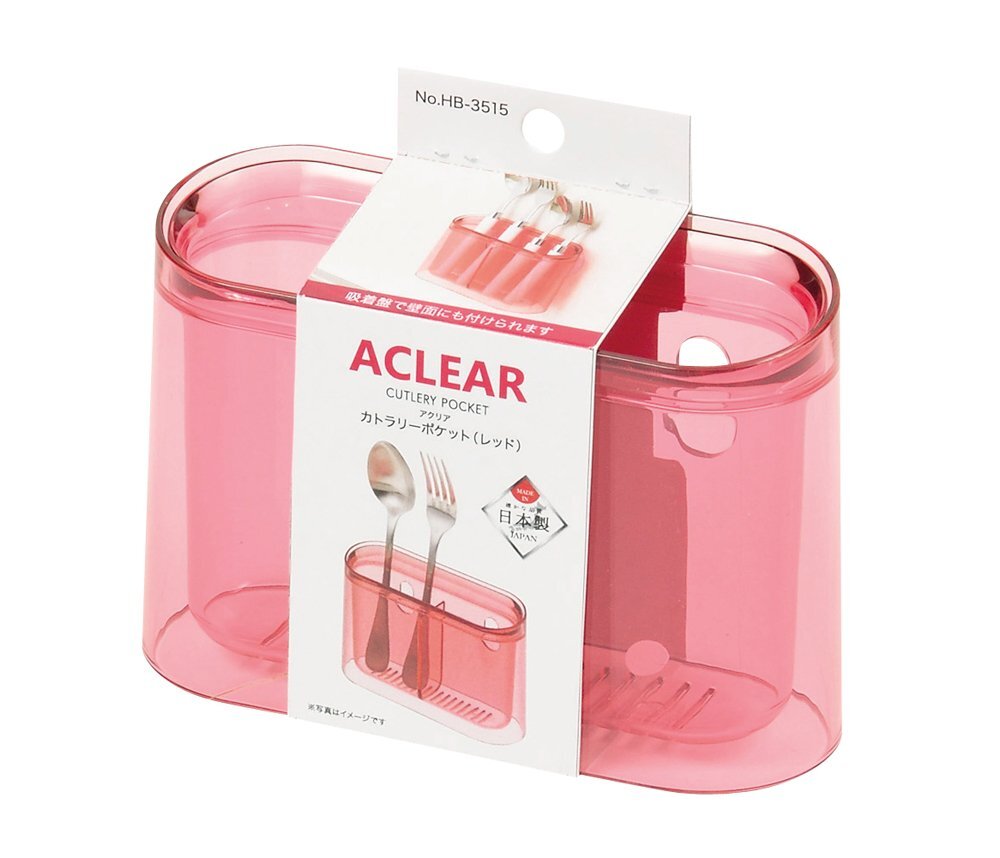 「パール金属 カトラリー ポケット レッド アクリア HB-3515」▼4549308535150▼(商品説明)・レッド 幅14.5×奥行5.5×高さ10cm(吸盤含まず) HB-3515・・Color:レッド・サイズ:(約)幅14.5×奥行5.5×高さ10cm(吸盤含まず)・原料樹脂:アクリル樹脂(耐熱温度80度)、その他の材料/吸着盤/塩化ビニル・耐荷重:(約)500g説明 吸盤付のカトラリーポケット