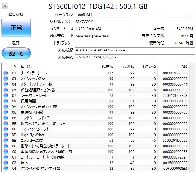 容量:500GB 接続方式:SATA(Serial ATA) ■正常動作しておりますが、使用時間が16000時間とかなり長いため保証なしのジャンク出品とさせていただきます。 ■0フォーマット済みの為、現在は未割当状態です。 |