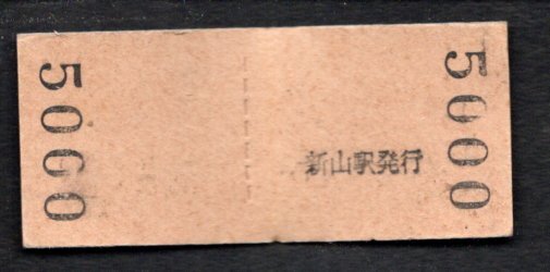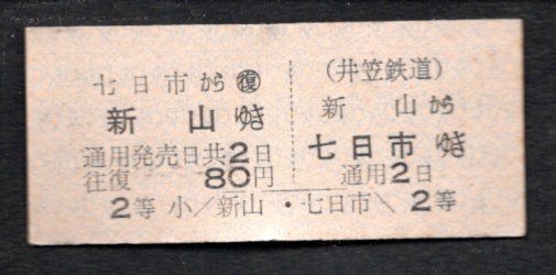 廃止(井笠鉄道)往復乗車券(新山から七日市行き80円2等)