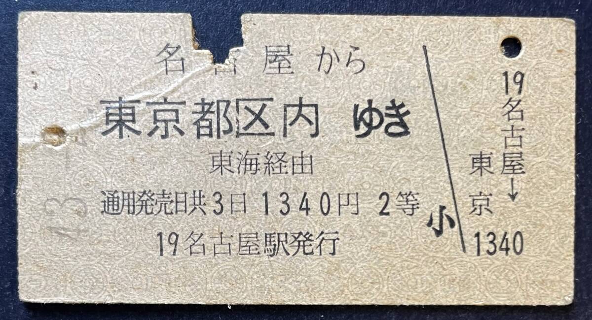 国鉄、硬券、東海道線 名古屋駅−東京都区内、昭和43