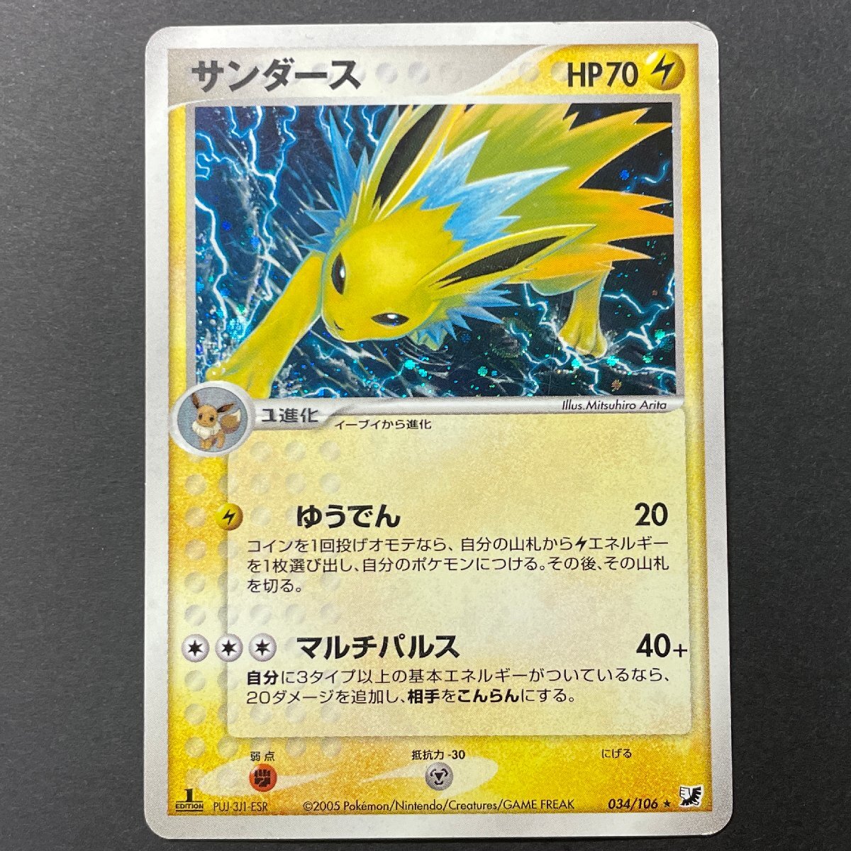 ■品名:ポケモンカードゲーム サンダース 034/016 ※出品商品は画像に写るものが全てとなります。 ※ハンガーやスタンド等、当店の備品を用いて撮影を行う場合がございますが、備品は付属いたしません。 | ||