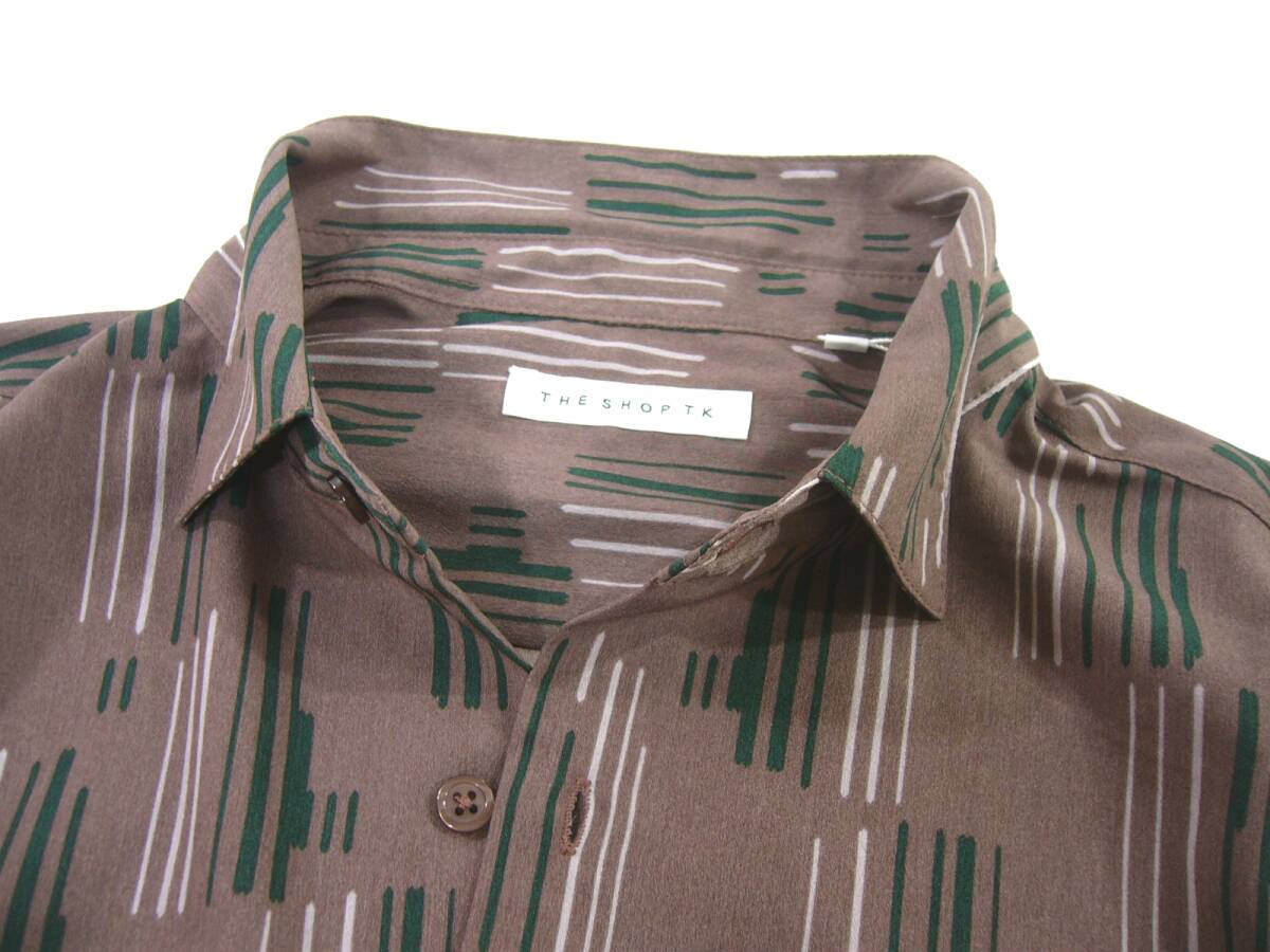 新品 タケオキクチ THE SHOP TK 幾何学柄 長袖シャツ L チャコールグレー系 なめらかな肌触りメンズ