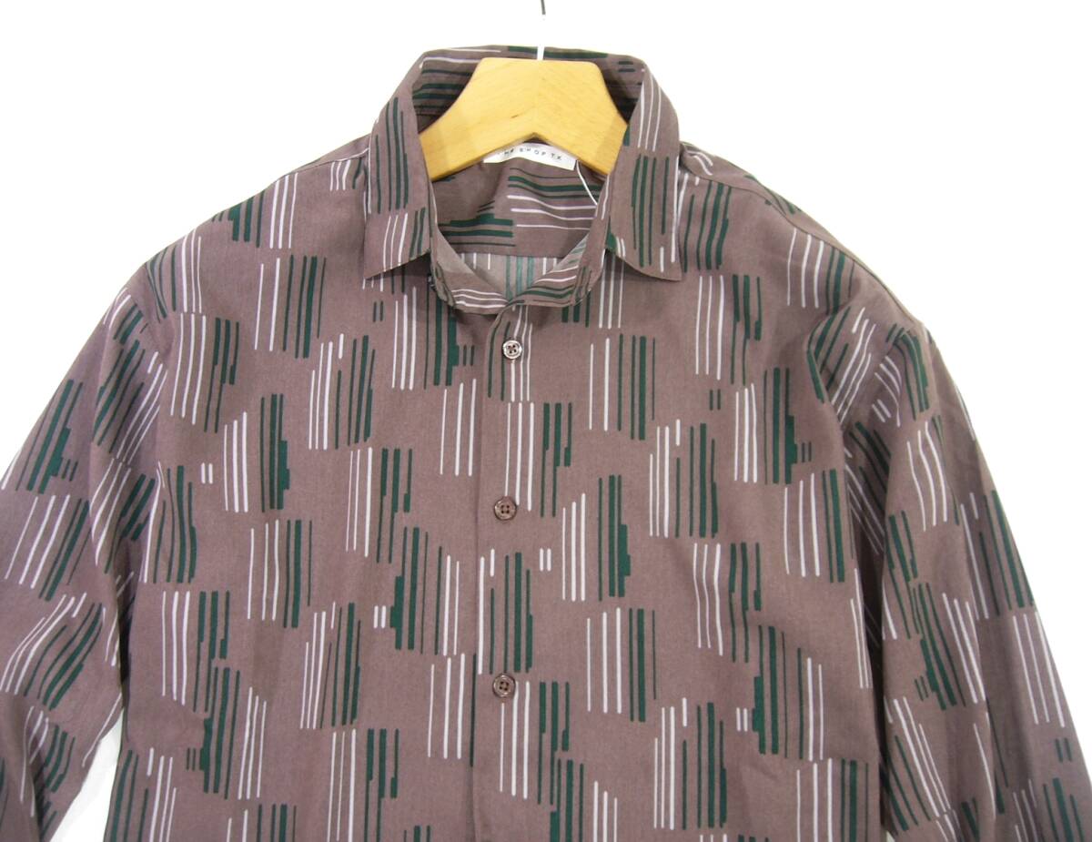 新品 タケオキクチ THE SHOP TK 幾何学柄 長袖シャツ L チャコールグレー系 なめらかな肌触りメンズ ライトアウターに◎
