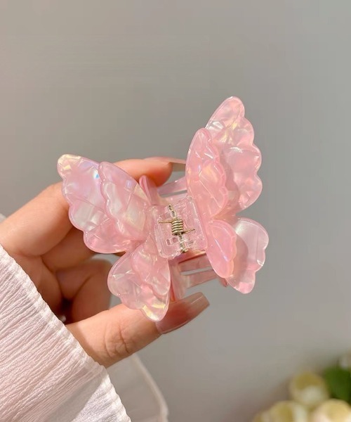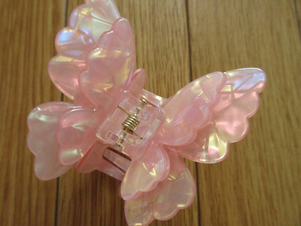 Auntie Rosa アンティローザ バタフライ バンスクリップ (ベビーピンク) キラキラ ヘアクリップ W羽 蝶 ヘアアクセサリー 蝶々