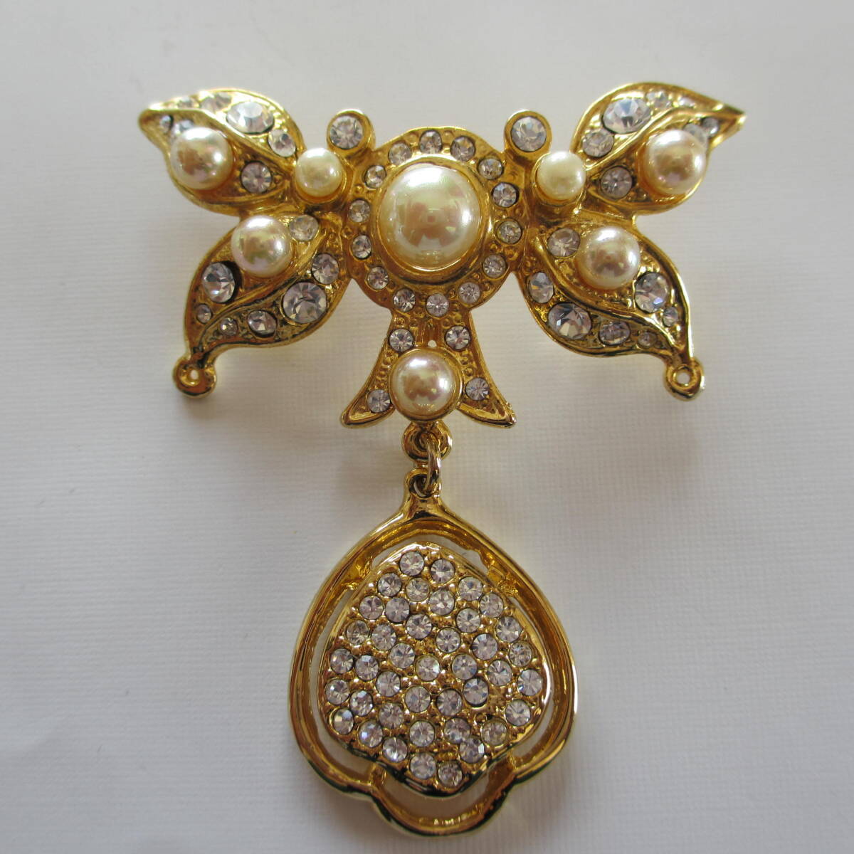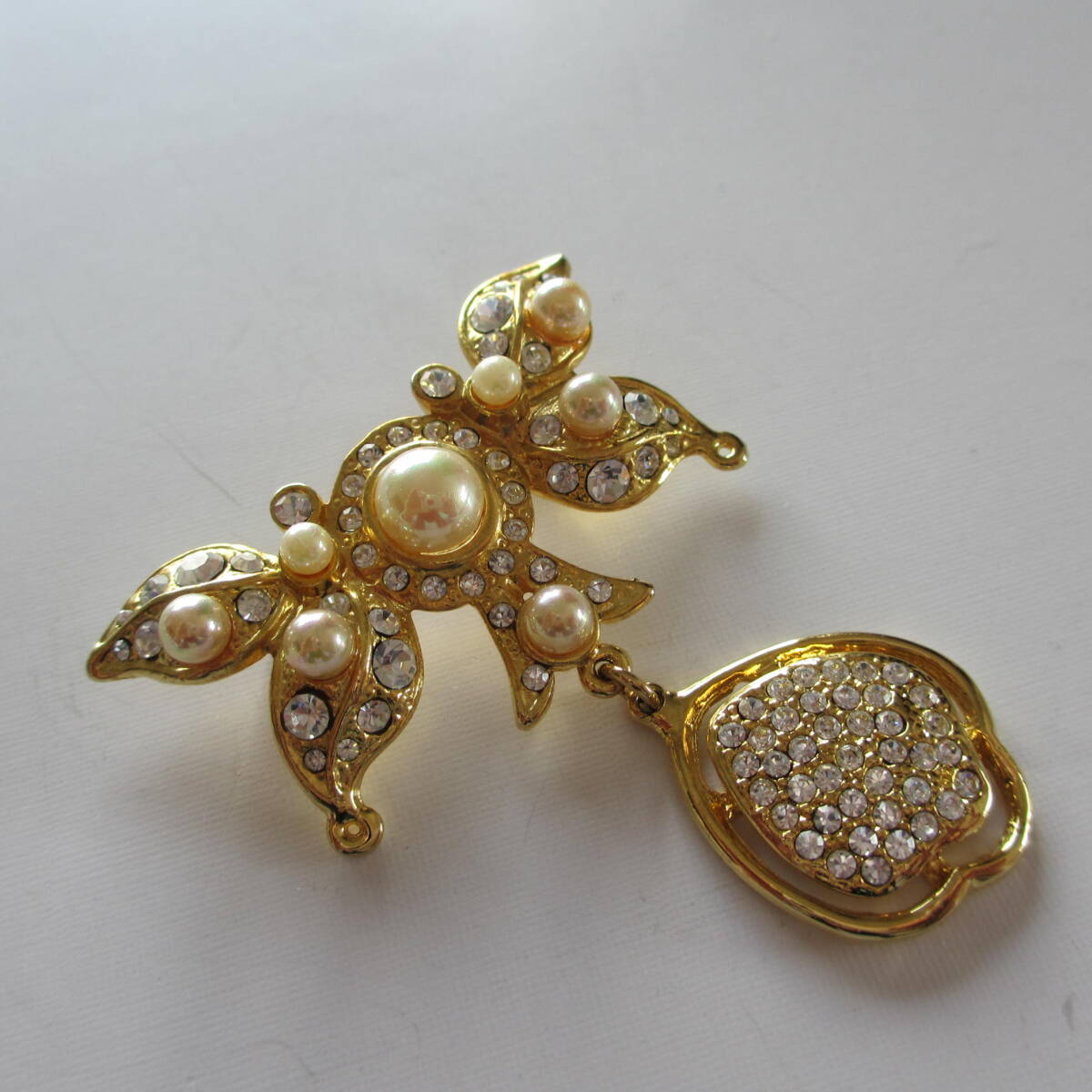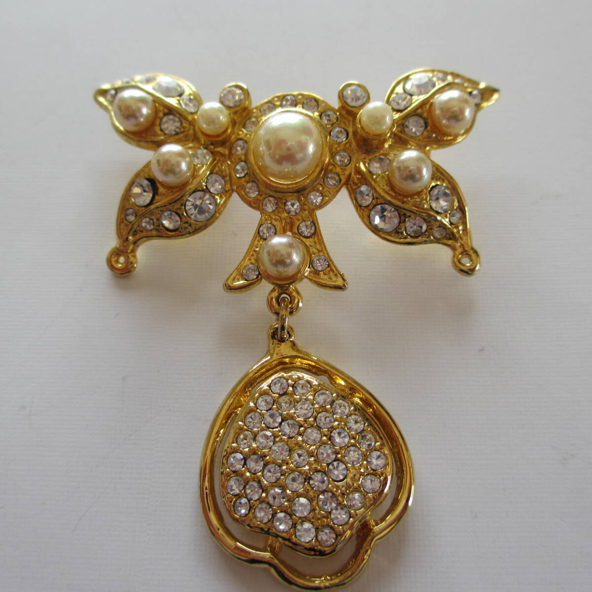 ゴールドカラーにパールとラインストーンのブローチです.(自宅保管)