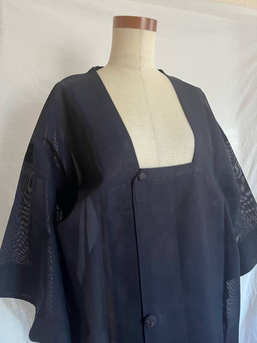 0055★道行コート*黒*透け感*羽織*和装コート*道中着*薄手*身丈122cm*着物*和服*和装*レトロ*和*レディース★