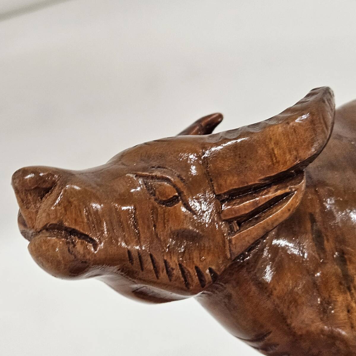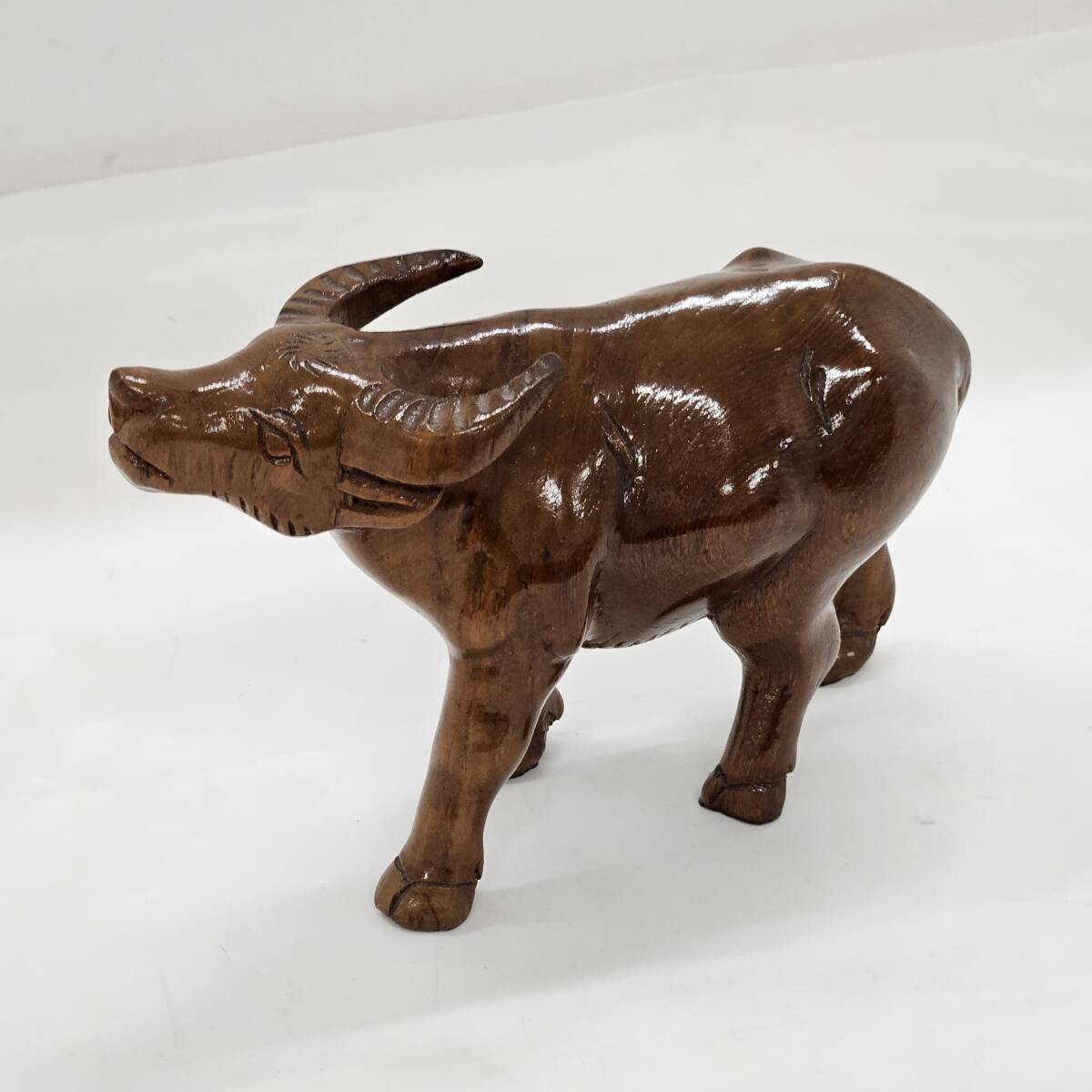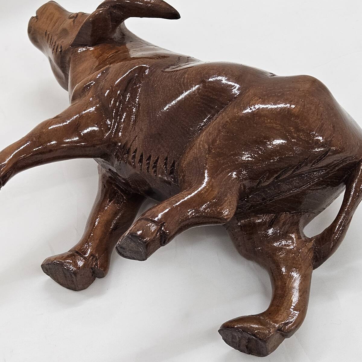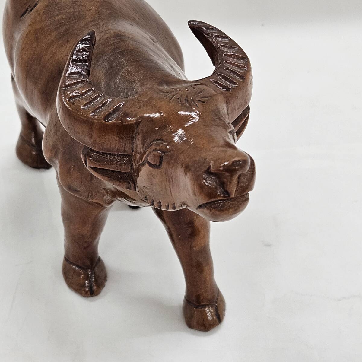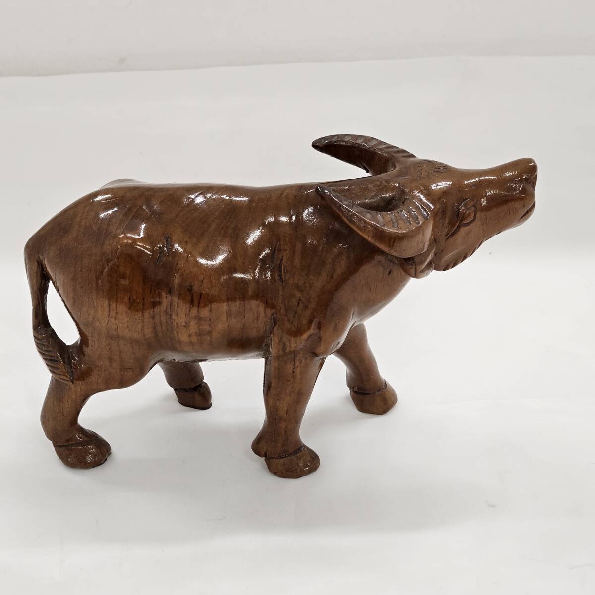 | 【外部-0908】木彫り 牛 置物 インテリア アンティーク 木彫 置き物(MS) |