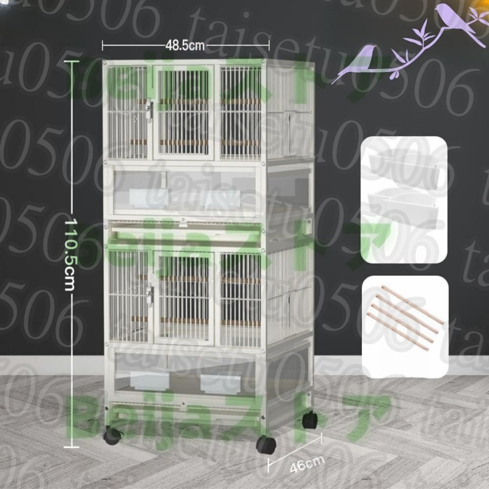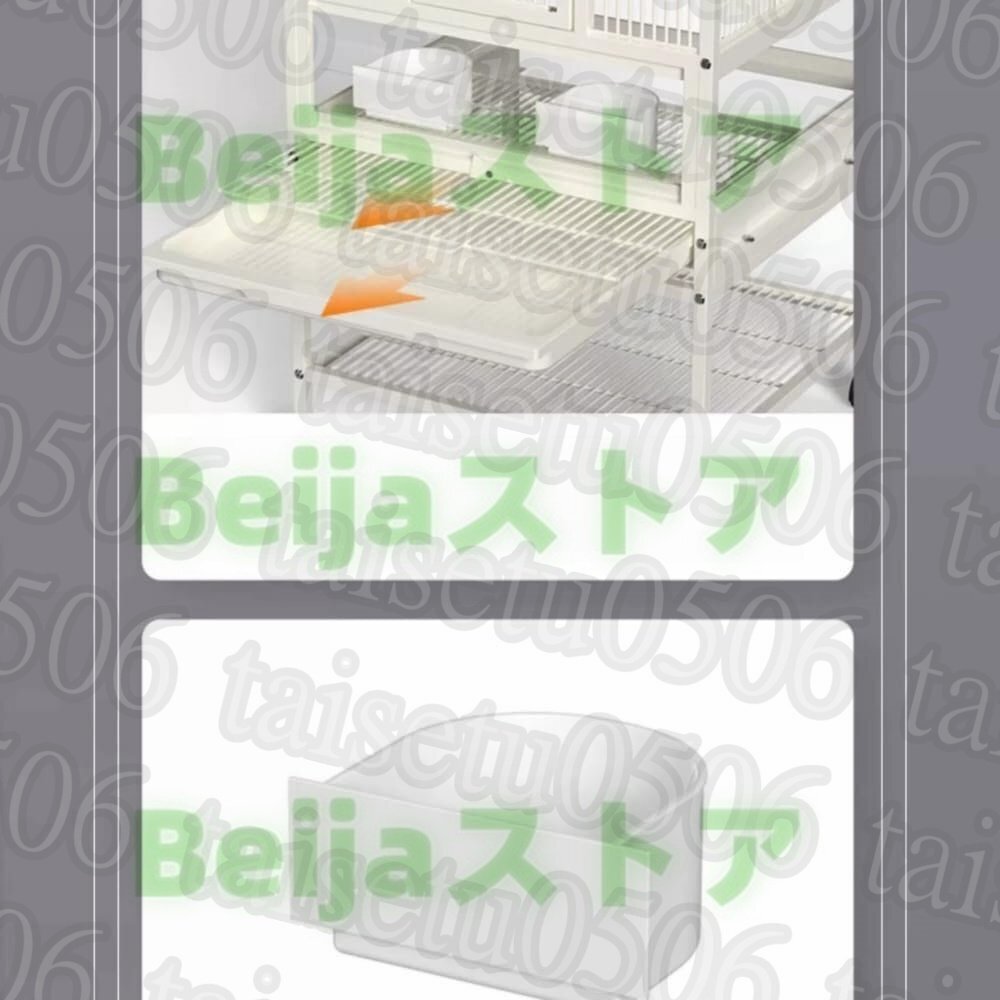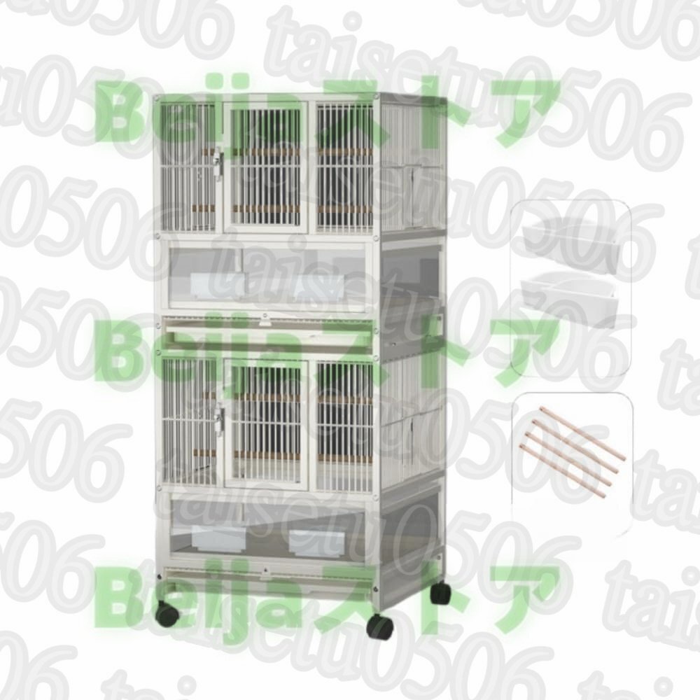 【製品】:鳥ケージ;材質:金属;静電コーティングを使用して、錆や異臭を防ぐことができます。セット内容:ケージ本体、引き出しトレー、餌入れ;サイズ52*48.5*46cm/57.5*48.5*46cm/110.5*48.5*46cm