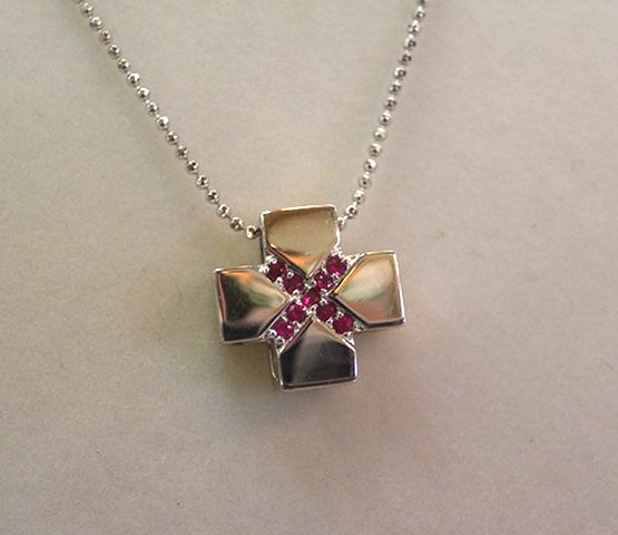 ♪【K18WG】製のクロス・十字架に天然【ルビー】0.20cが埋め込まれています。裏面は【K18】製で、クロス全面に【天然ダイヤモンド】0.25cがパベ留めされています。内包物も見られるダイヤですがキラキラ光ってゴージャスです。気分によって裏表両面楽しめます。 *ネックレスは、45cmまで自由に長さ調節出来るタイプの【Pt850】製・0.8㎜径・カットボールチェーンが付いています。取り外せますので他のペンダントにも使えます。 【総重量=約4.6g(ペンダントのみ=3.0g・ネック=約1.6g)・縦巾=12.11㎜・横巾=12.11㎜・最大厚=5.21mm】*本物。 【送料・消費税・システム料・ケース、すべて無料!!】 *ペンダントのみ購入の場合¥49800円。 その場合は、まず質問欄よりご連絡下さい。 ●注意●この商品は、他のサイトでも出品中ですので、万が一、そちらで落札された場合は、お譲り出来ないことをご了承下さい。 ***【商品代金について】 消費税・システム使用料・落札 手数料・送料すべて込みです。 【お届けについて】 すべての商品の送料込みの値段です。 (1万円以上の商品はヤマト便・手渡し。1万円未満は配達記録郵便です。) 【ご返品について】 万が一、お届け商品が偽物・欠陥品・不良品のみ商品のお届け日から3日以内 の場合は、まず電話かメールでご連絡頂いた上で返品をお受けします。 ご落札者様のご都合(イメージが違う・入札商品、入札価格の入れ間違い)での ご返品の場合は、落札手数料及びシステム使用料・送料をご負担頂きます。 また、事前にご連絡の無い場合・4日以上経過しての返品・使用後の返品・ サイズ直し後のご返品は、一切お受け出来ませんのでご理解下さい。 【キャンセルの場合】 ご落札後のキャンセルは、ヤフー評価システムにより自動的に【悪い評価】が ご落札者に付いてしまいます。ご理解の上のご入札・ご落札をお願いします。