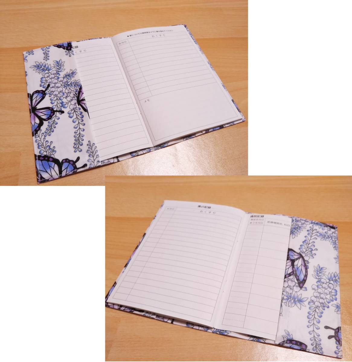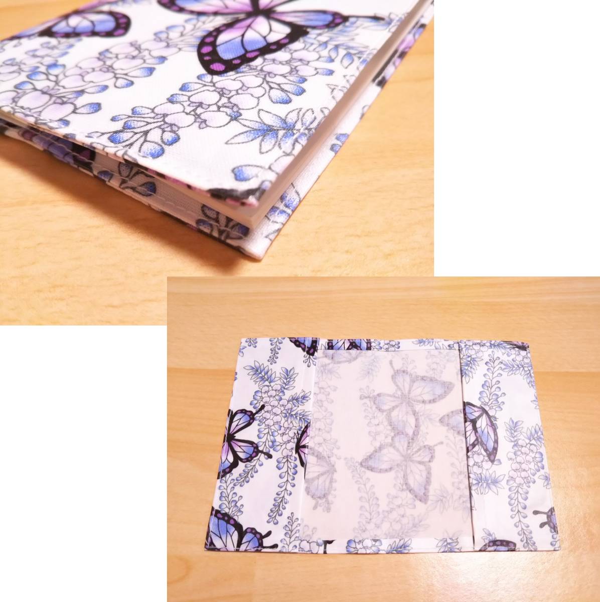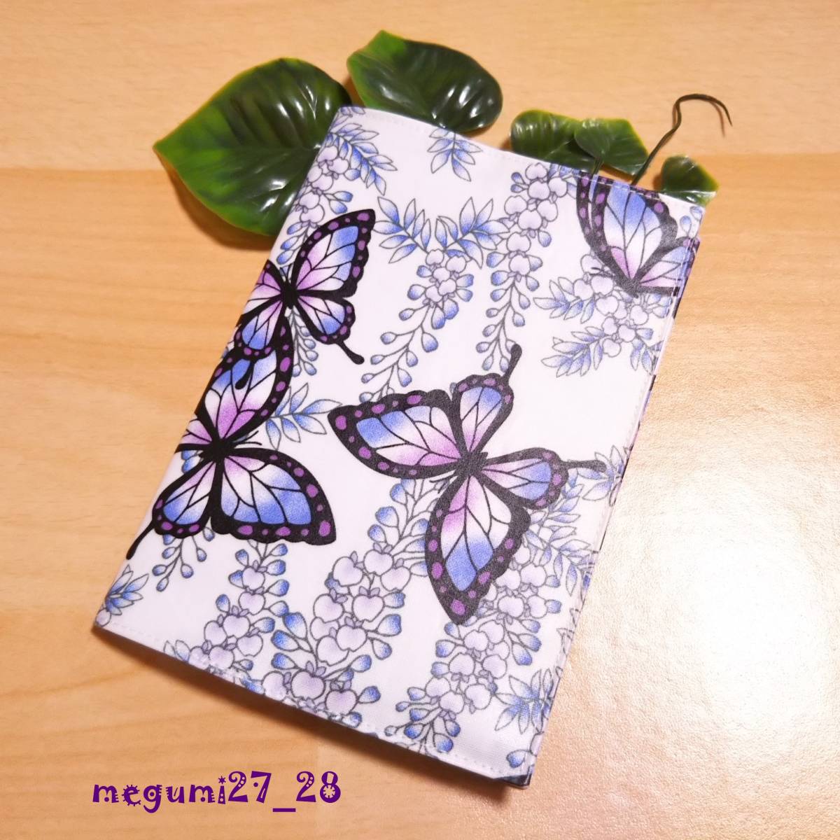 <お薬手帳カバー>蝶&藤パープル♪ハンドメイド♪おくすり手帳♪ラミネート加工◎ビニールコーティング
