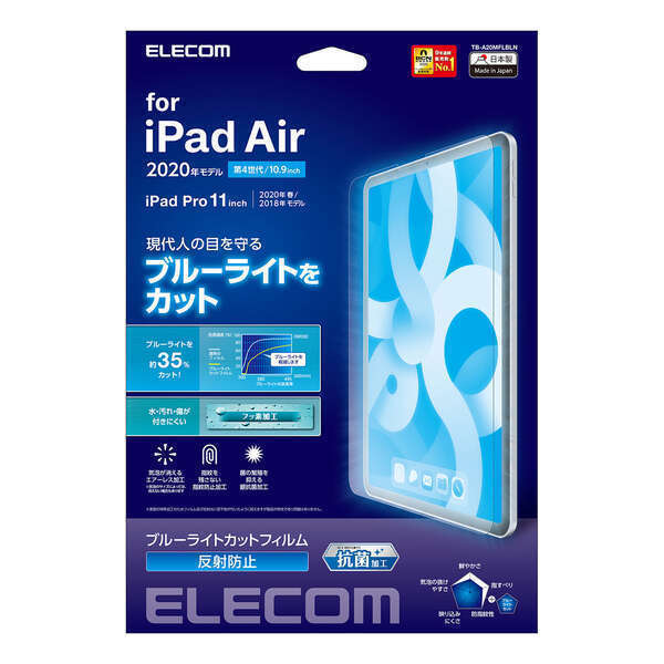 | 製品 | iPad Air 第5/4世代、Pro 第3/2世代対応 液晶保護フィルム ブルーライトカット・反射防止タイプ |