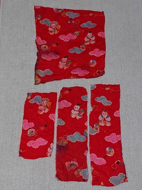 K-41-02*4枚*錦紗*正絹*市松人形*和装小物*和装人形*手作り人形*はぎれ*古布*リメイク*アンティーク*つるし飾り*手芸*パッチワーク