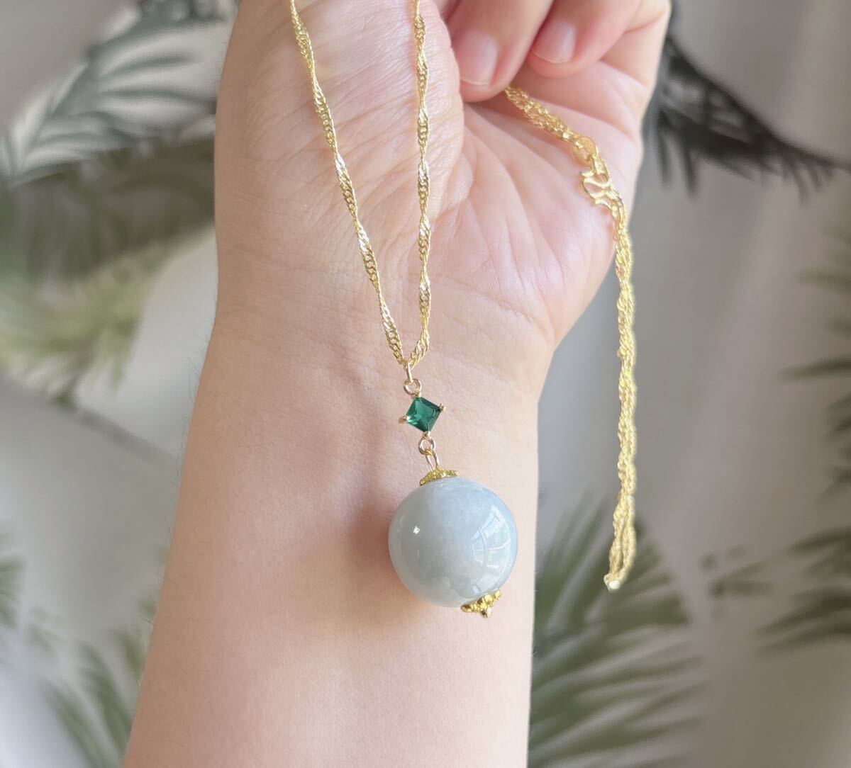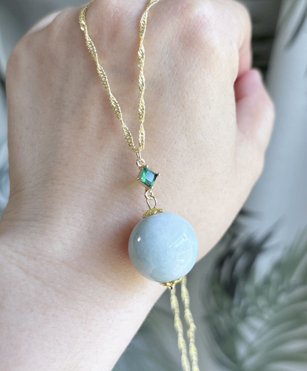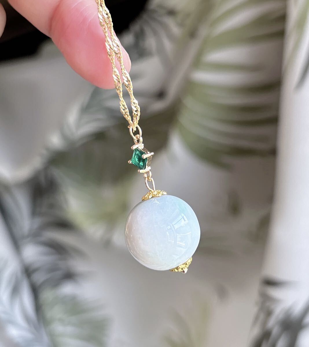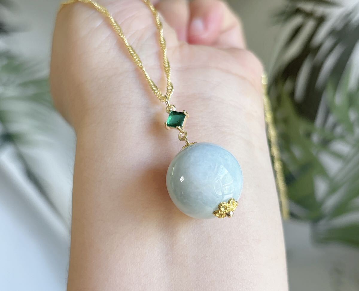 天然ミャンマーの本翡翠(A)ペンダントのサイズ:約直径17.5mm;