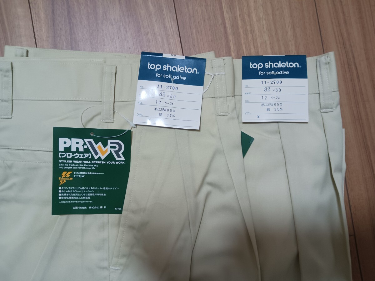 564 藤和作業ズボン2枚組№11-2700ベージュW82㎝ツータックスラックスtop shaleton新品未使用春夏   (TAKAYA自重堂Jawinチノパンツ