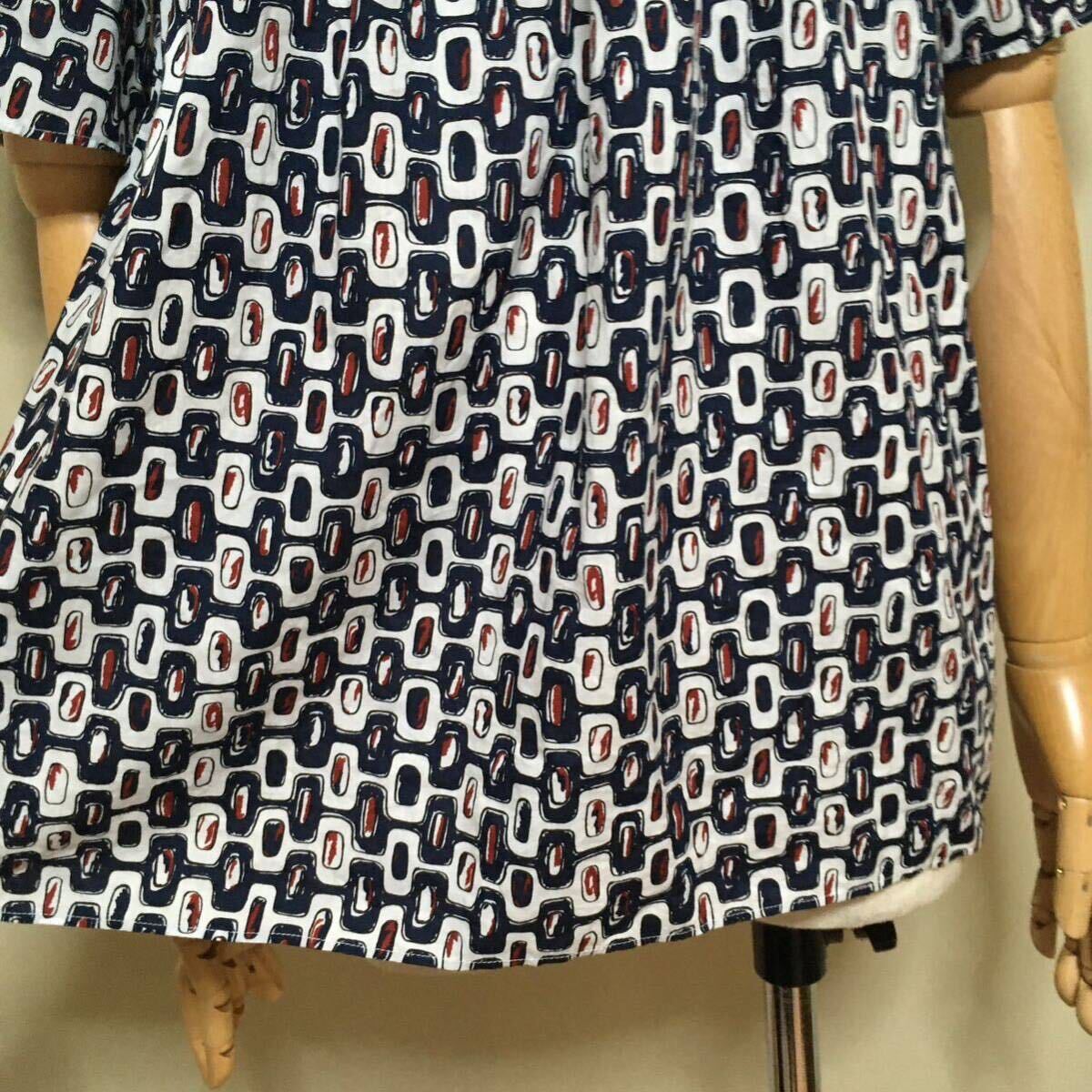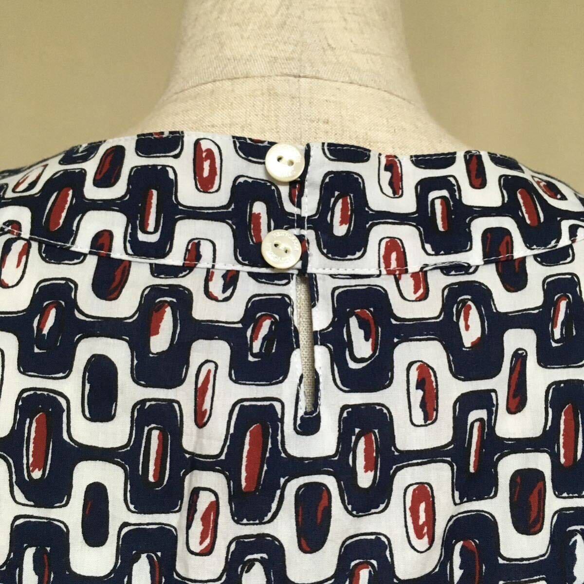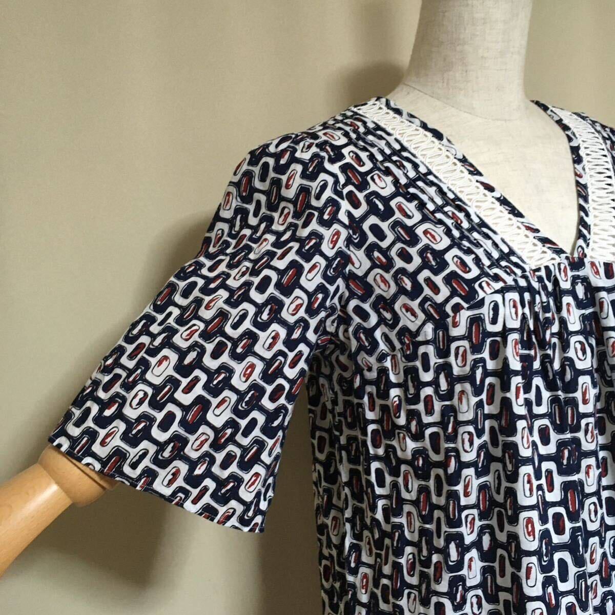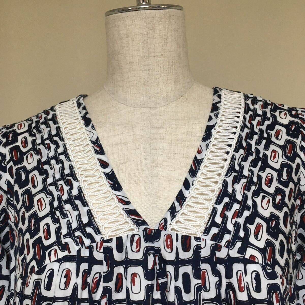【美品】NEWYORKER ニューヨーカー 洗える レース Vネック 幾何学模様 半袖ブラウス 9号/Mサイズ相当 ネイビー レディース トップス