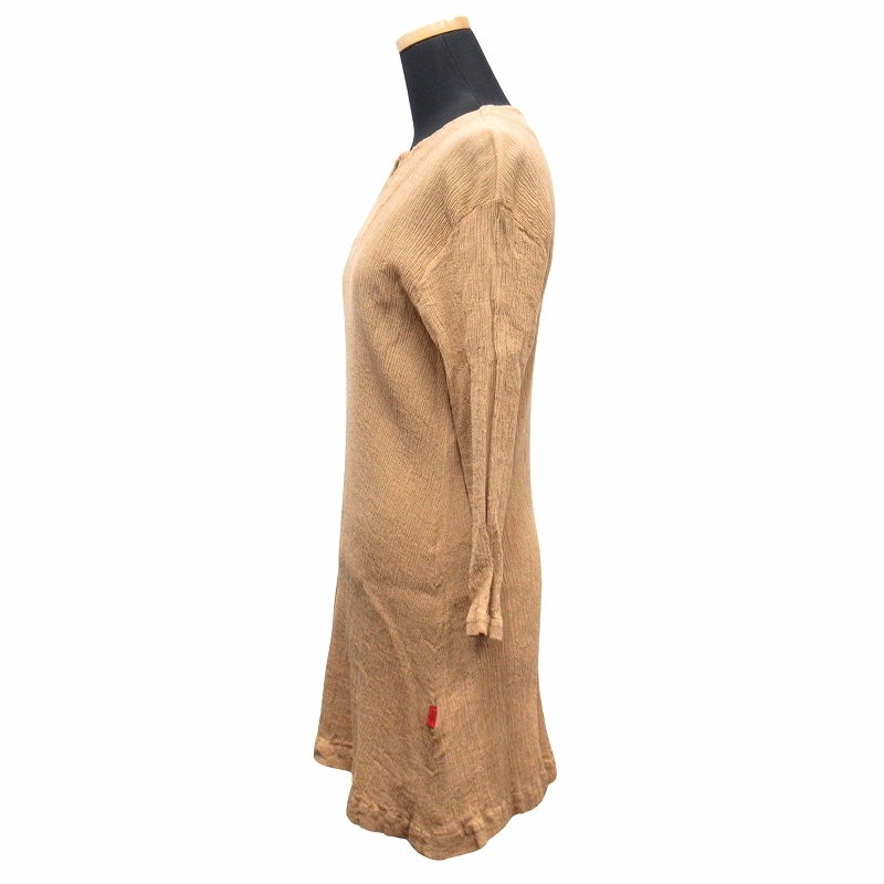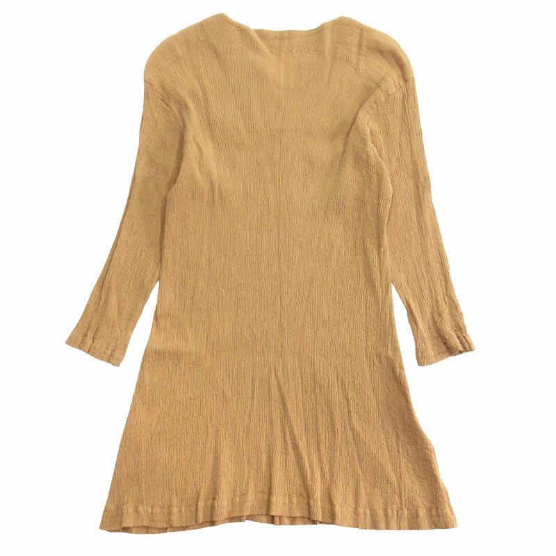 美品 19ss ハート イッセイミヤケ 製品染め加工 プリーツ ミニ ワンピース ドレス チュニック カットソー 京ちぢみ キーネック ◆12