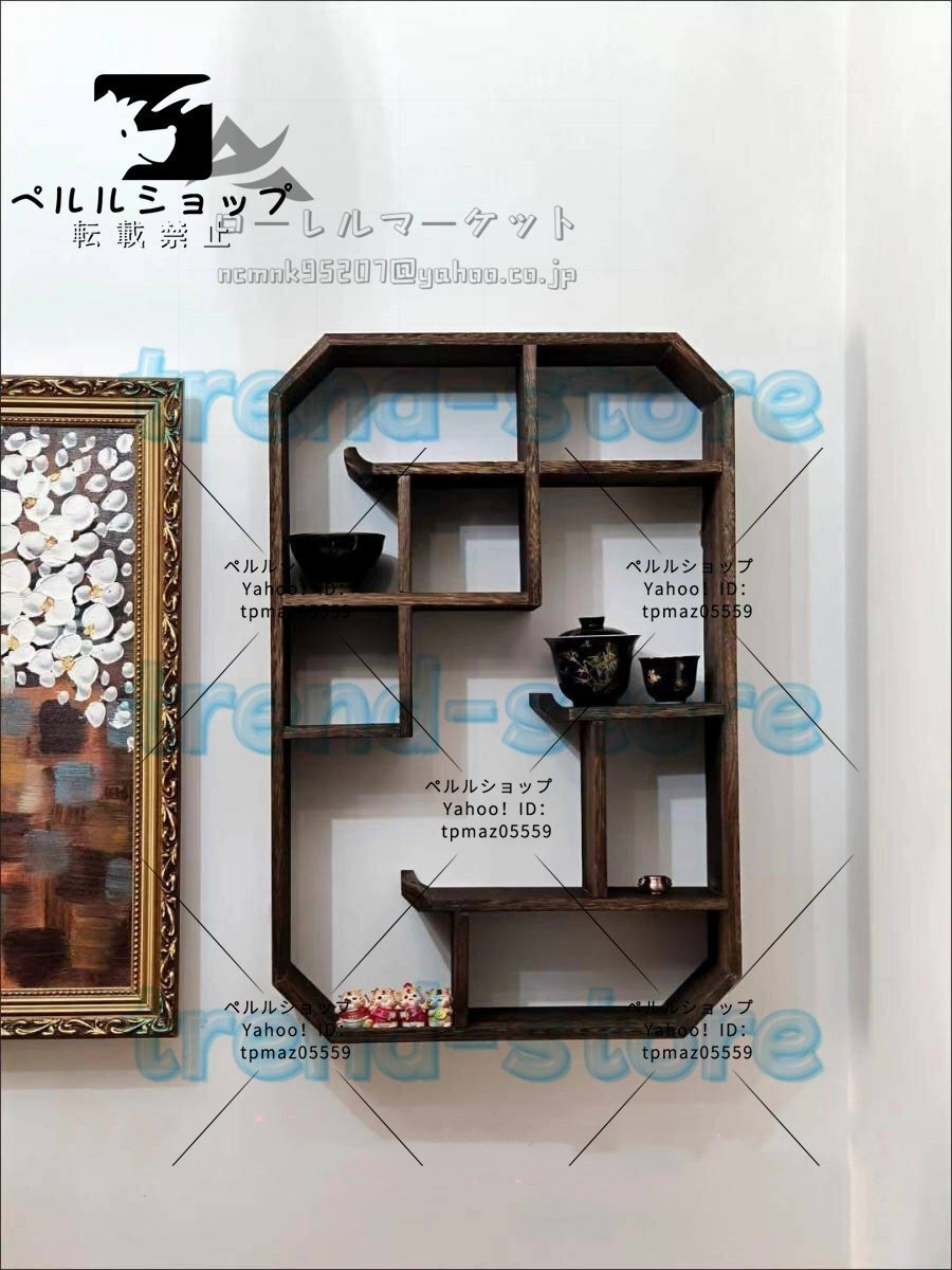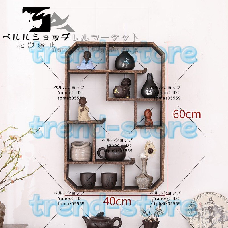 日式 茶碗ラック 茶器展示棚 ソリッド・ウッド 茶道 置物台 材質 桐の木 モダン 茶具収納棚 壁掛け