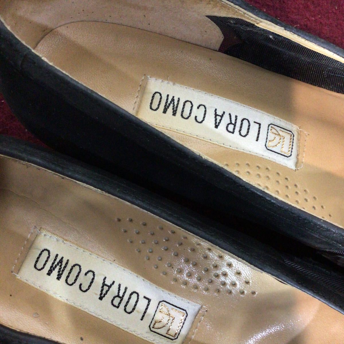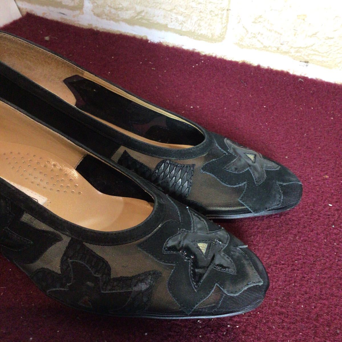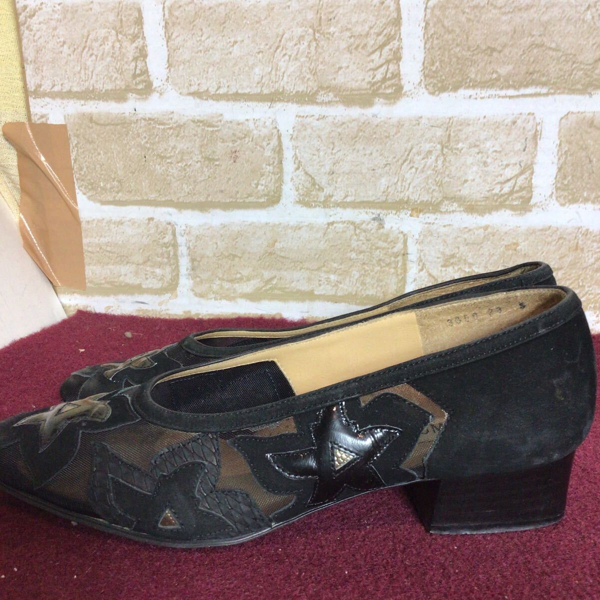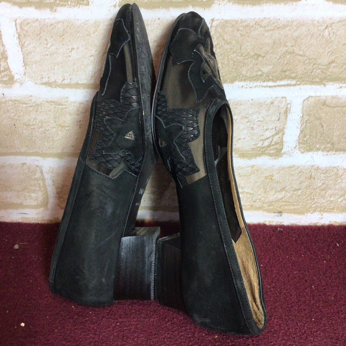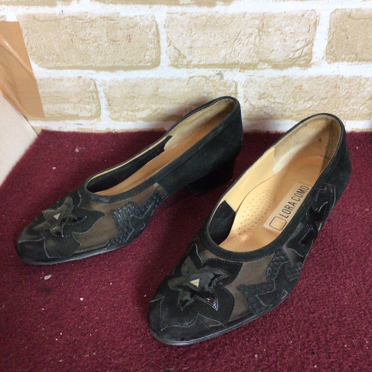 【売り切り!送料無料!】A-377 LORA COMO!シースルーパンプス!スエード!黒!23.0cm EEE!ブラック!おしゃれ!太めのヒール!中古!