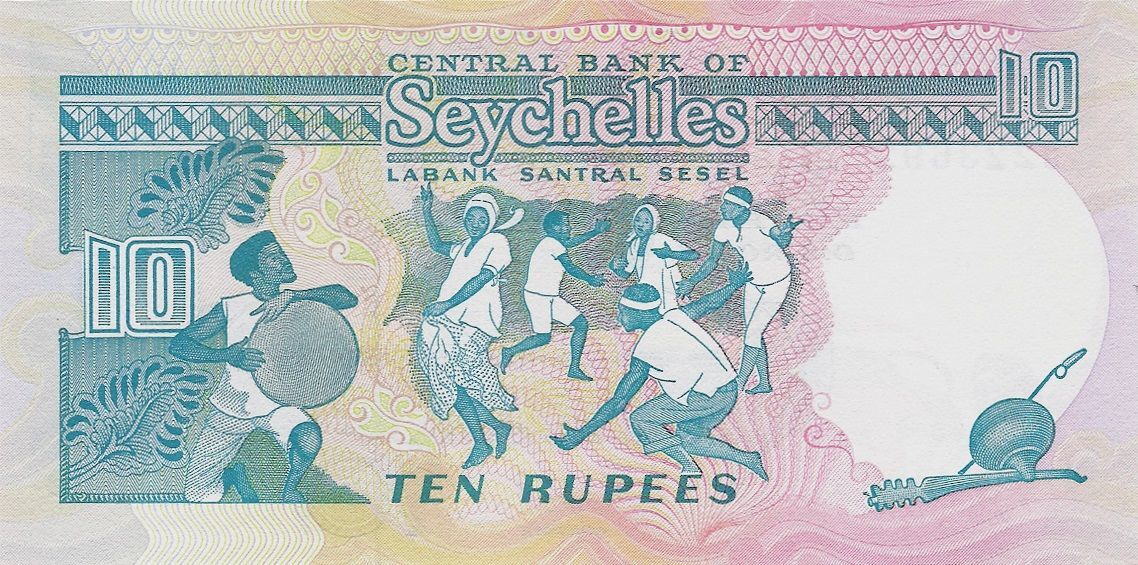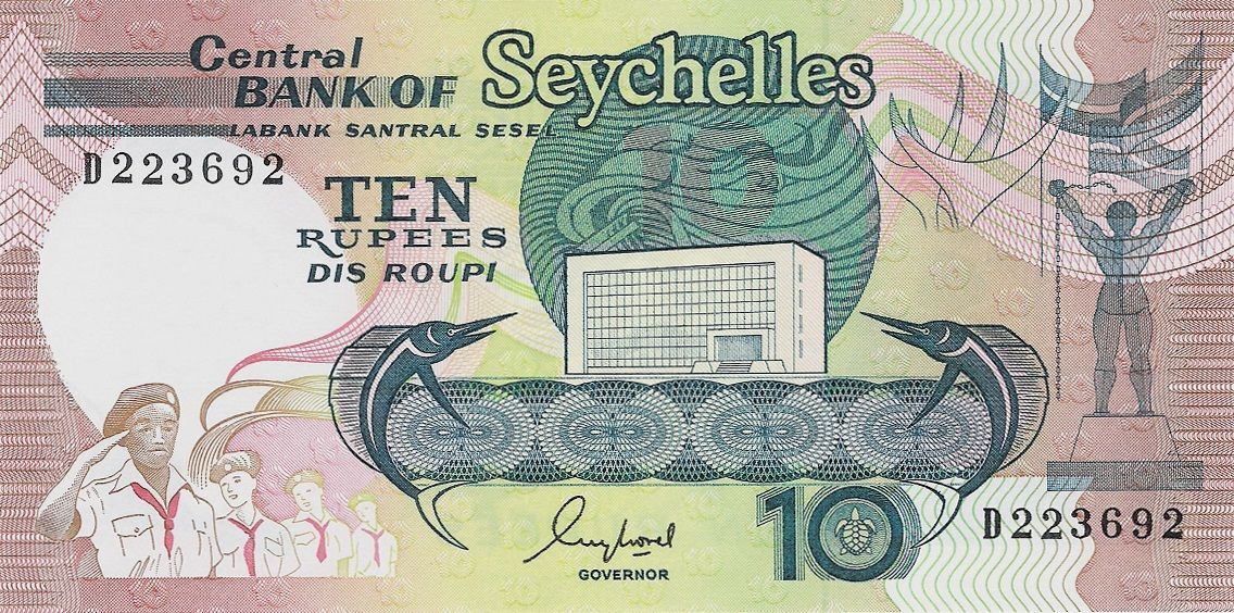 (B-1218) セイシェル 10ルピー紙幣 1989年  カジキ