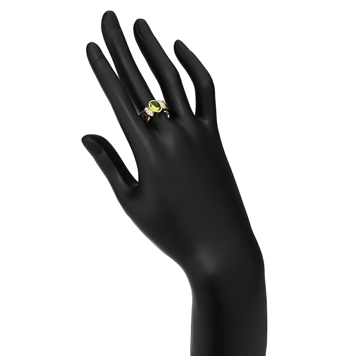 中央で輝くペリドットが美しいリング。その脇をダイヤモンドやガーネット、シトリンと様々な石たちが彩りを加えています。お手元を華やかに演出してくれる存在感のある一品です。