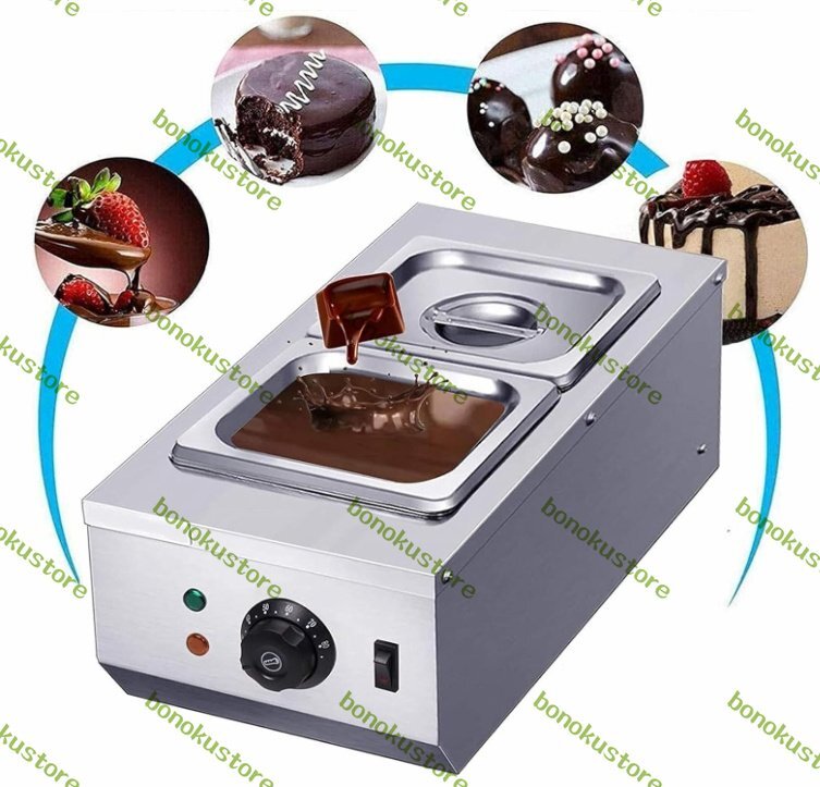 チョコレートテンパリングマシン 110v チョコレート焼き戻し機 30~80°C電気チョコレート溶解機 チョコレート溶融機 ステンレス鋼 2個ポッ