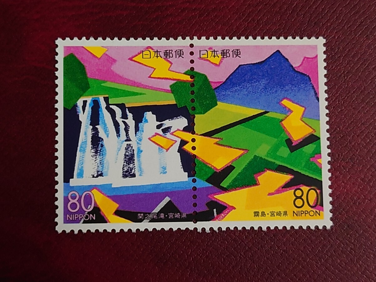 2000年12月12日発行。ふるさと切手宮崎県『関之尾滝と霧島』ペアです。
