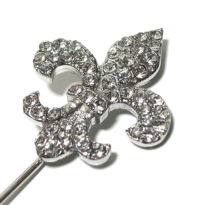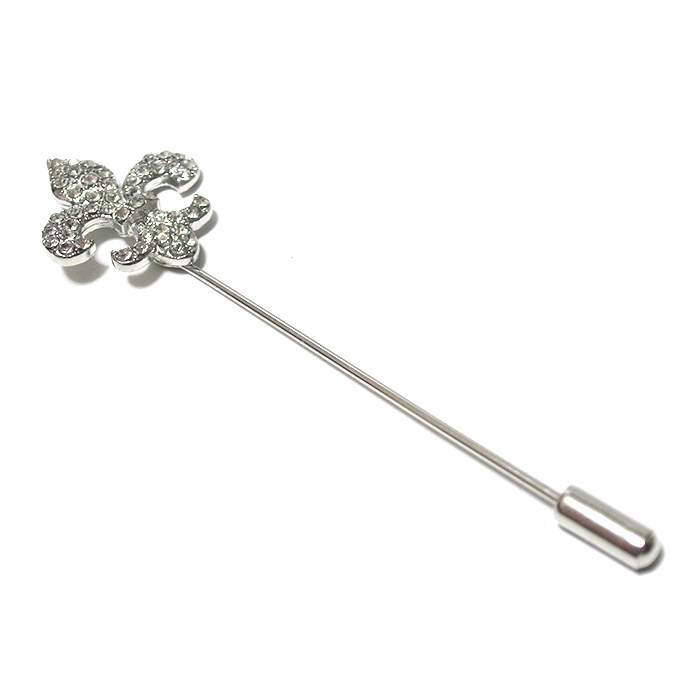 ラペルピン★スティック 百合の紋章 フルール・ド・リス ラインストーン シルバー pin-1545