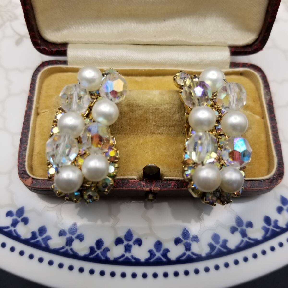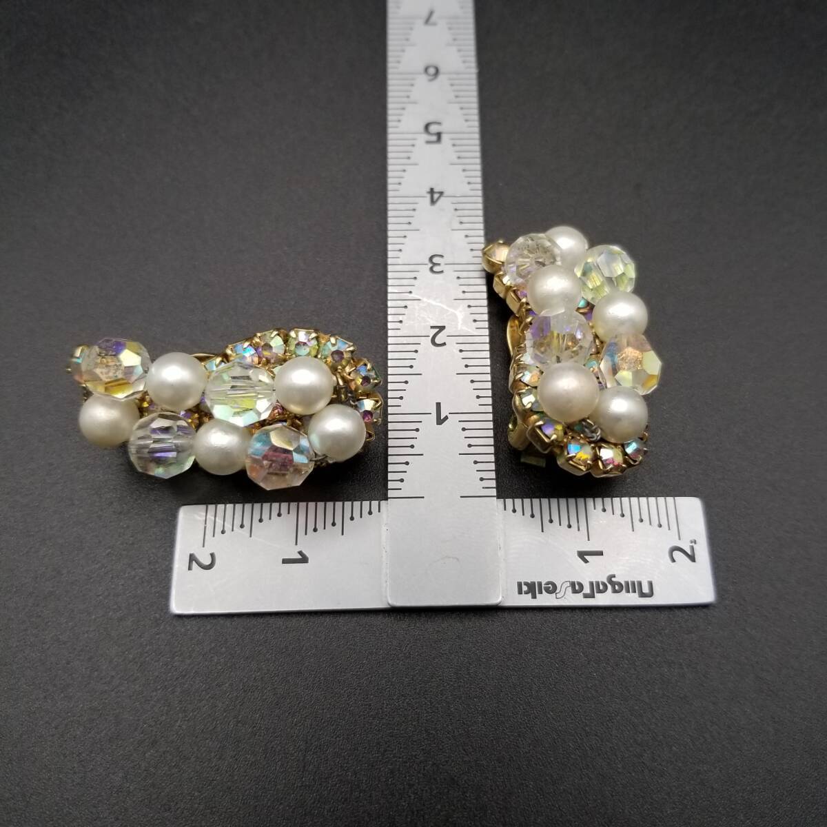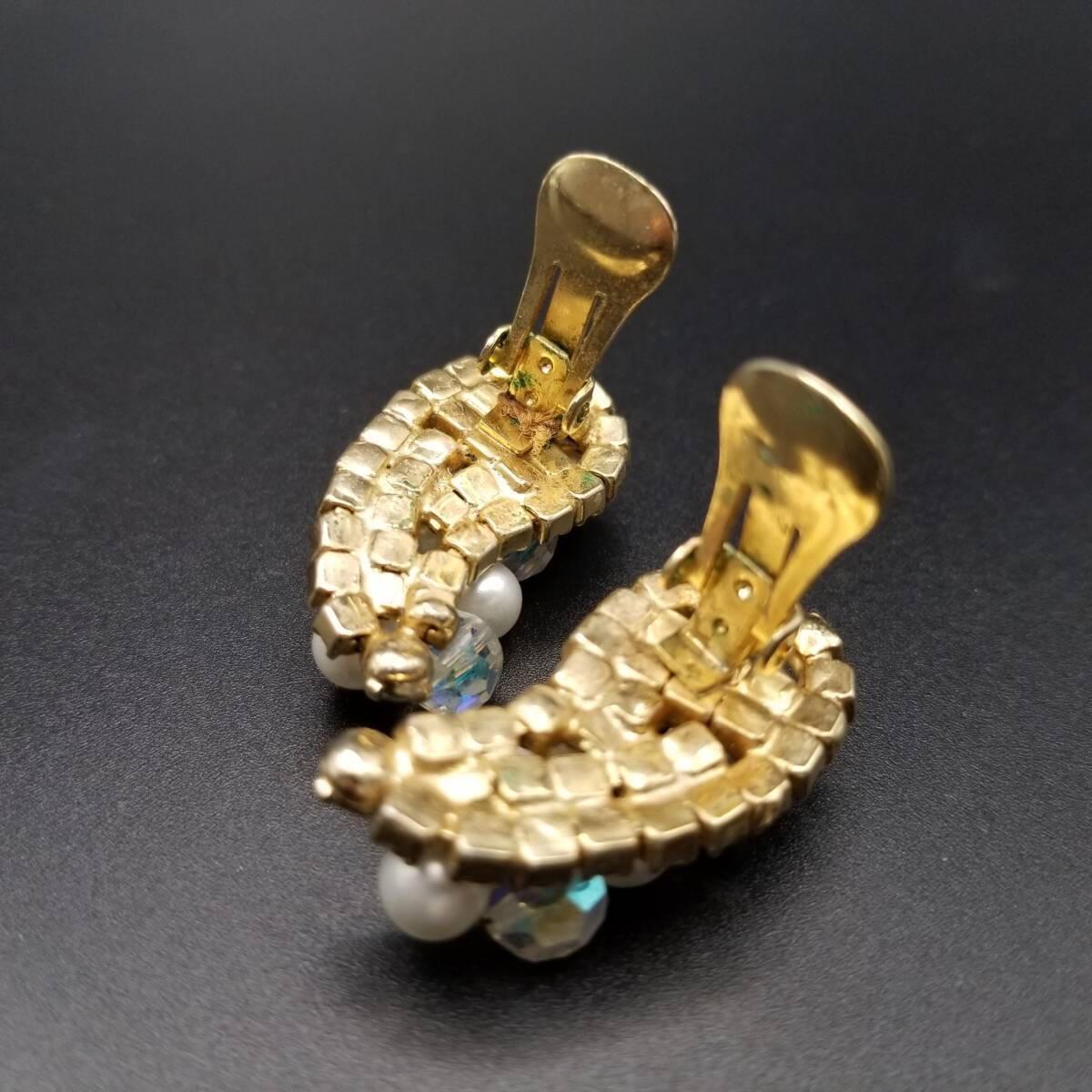 50'60's KRAMER パール/ラインストーン 装飾 エレガント ヴィンテージ クリップイヤリング 煌めき コスチュームジュエリー Y16-R