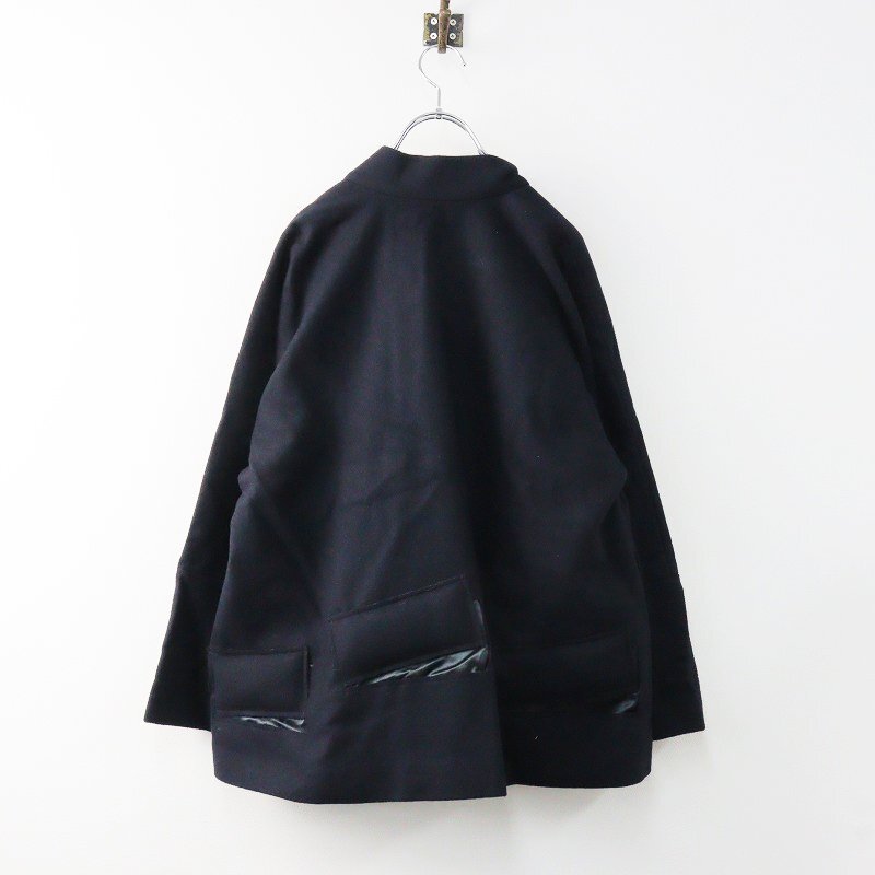 美品 2021AW コムコム COMME des GARCONS コムデギャルソン ウールメルトン 変形中綿入り ワイドジャケットXS/ネイビー【2400012763197】