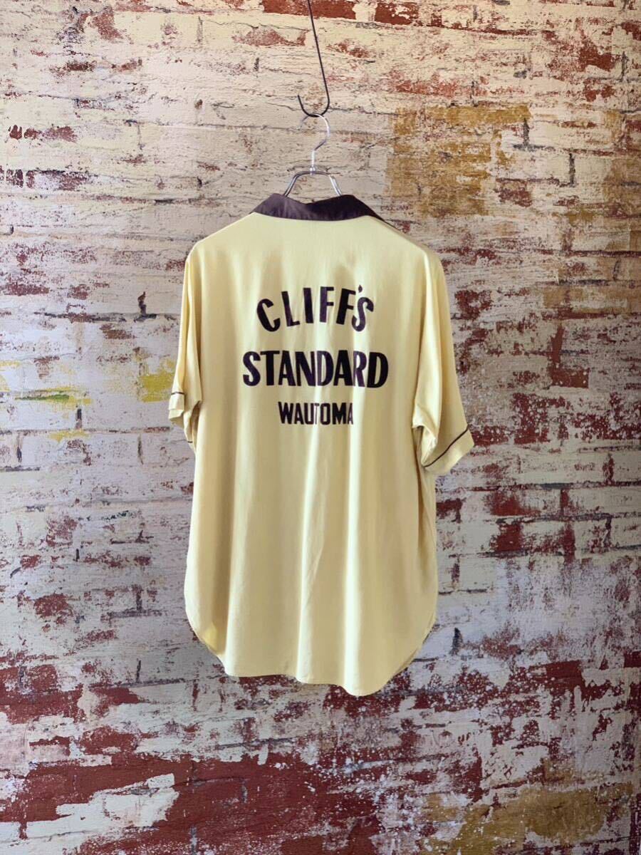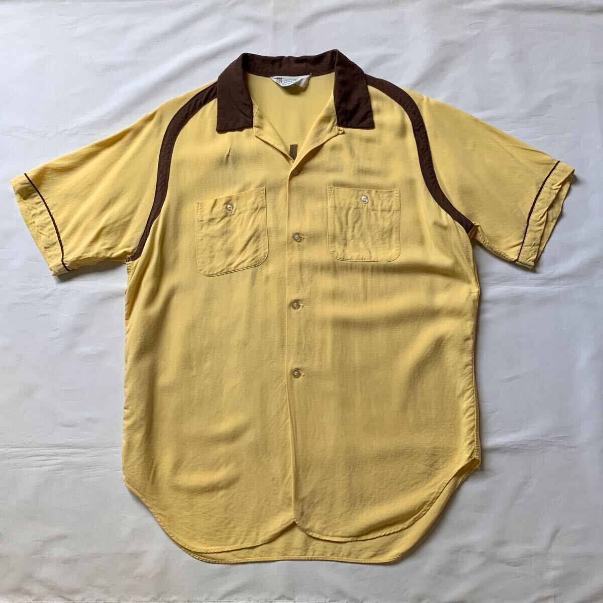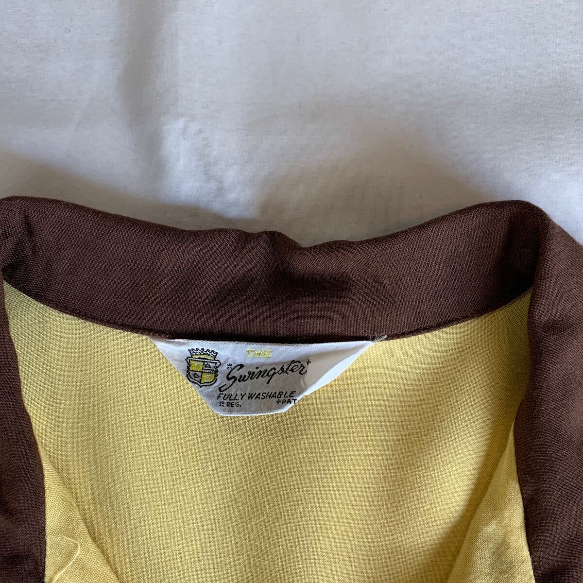 カスタード×ブラウンカラーのSwingster レーヨンボーリングシャツになります。バックはフェルトプリントです。この様なヴィンテージのボーリングシャツは人気があり、お探しの方も多いと思います。ヴィンテージらしい良いムードなのでオススメですよ。お探しだった方は是非ご検討ください。