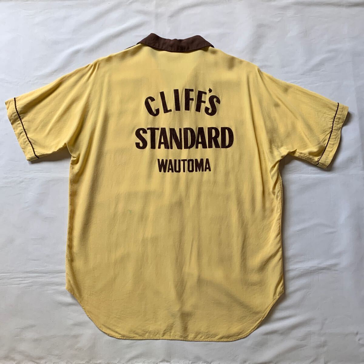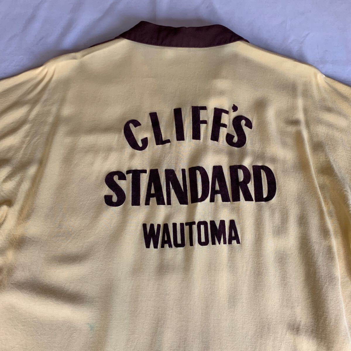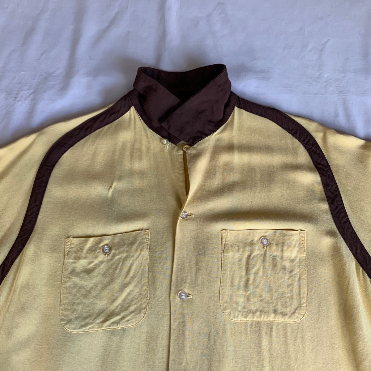 カスタード×ブラウンカラーのSwingster レーヨンボーリングシャツになります。バックはフェルトプリントです。この様なヴィンテージのボーリングシャツは人気があり、お探しの方も多いと思います。ヴィンテージらしい良いムードなのでオススメですよ。お探しだった方は是非ご検討ください。